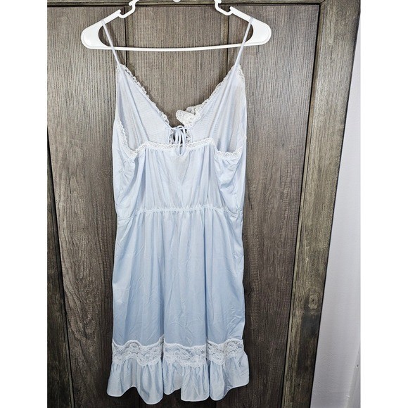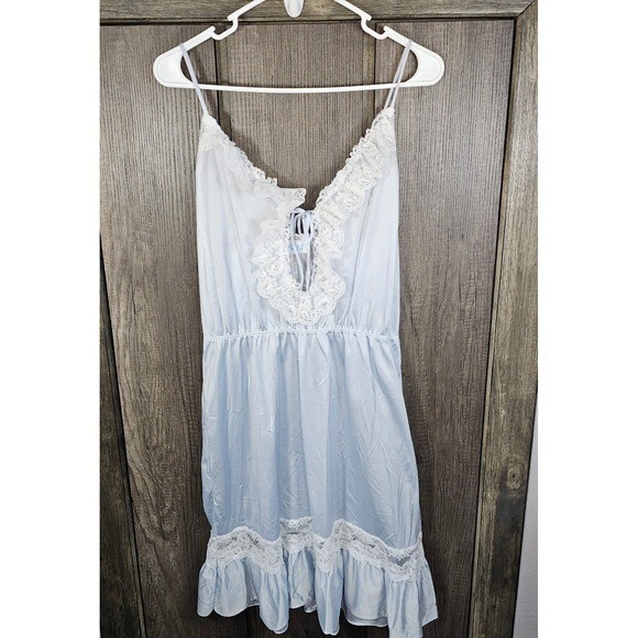 Jillie New York Baby Doll Slip Dress Lace Trim Baby Blue Satin Lingerie