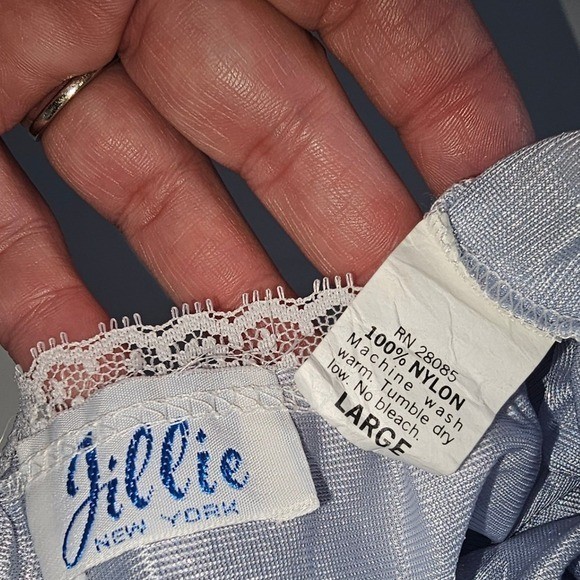 как выглядит Jillie New York Baby Doll Slip Dress Lace Trim Baby Blue Satin Lingerie фото