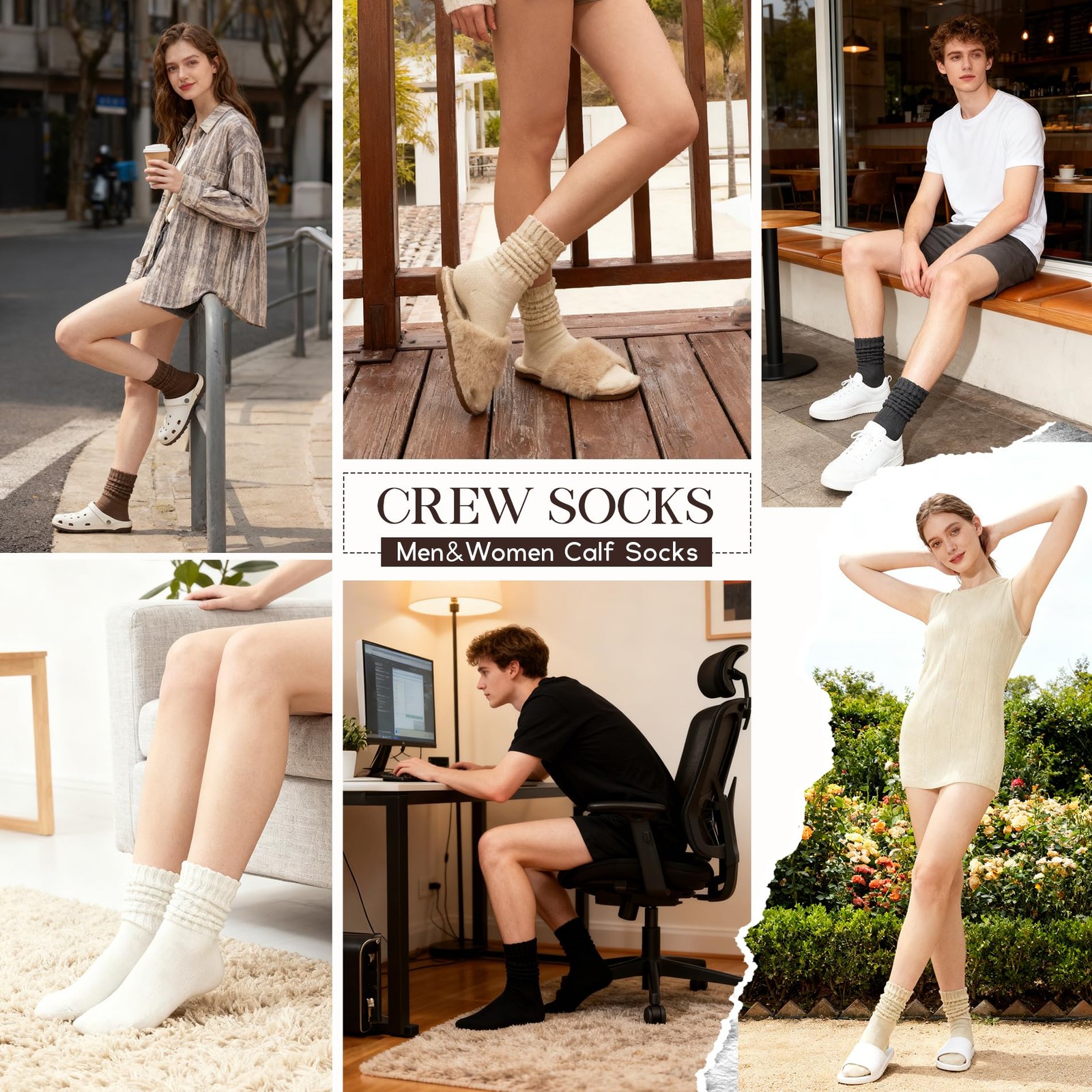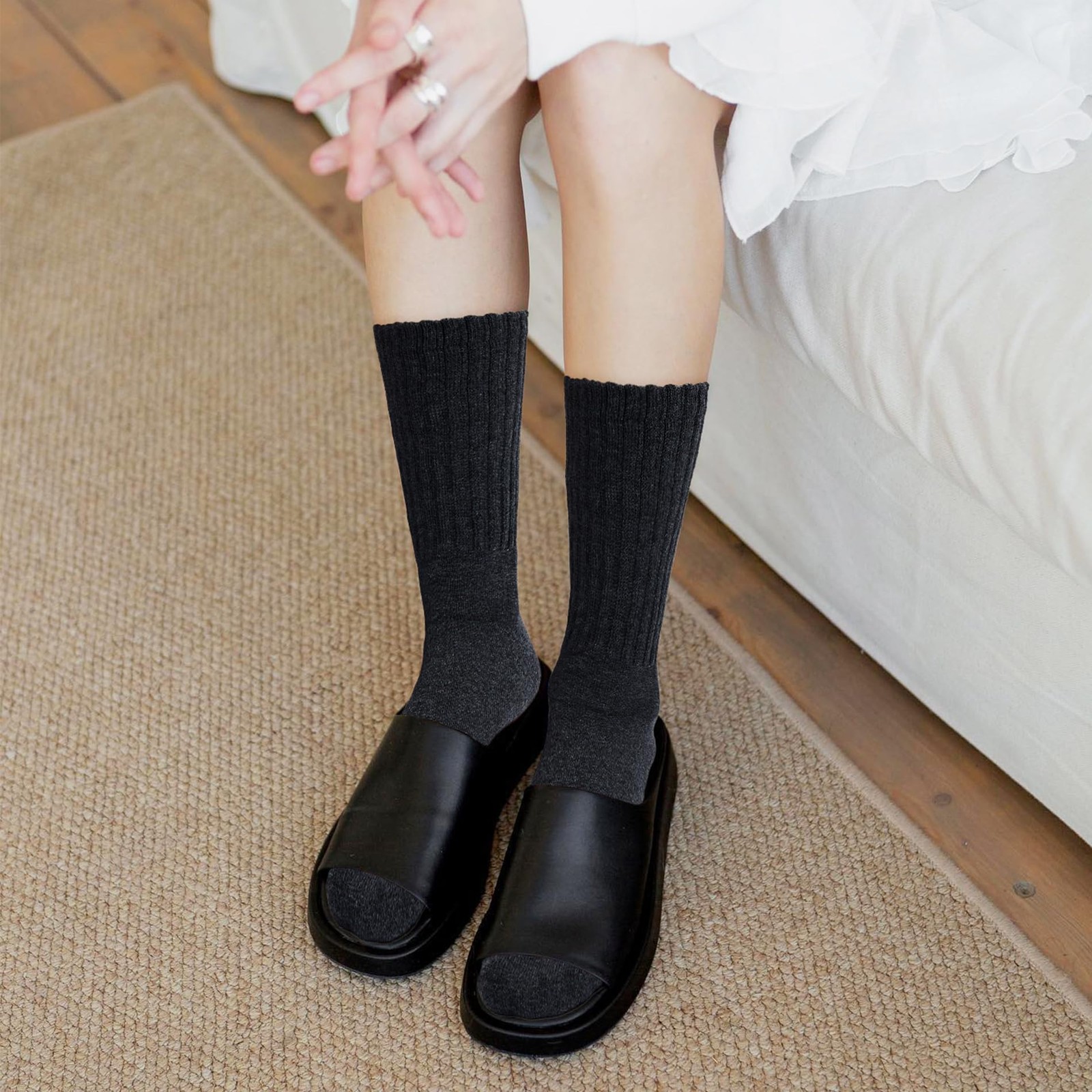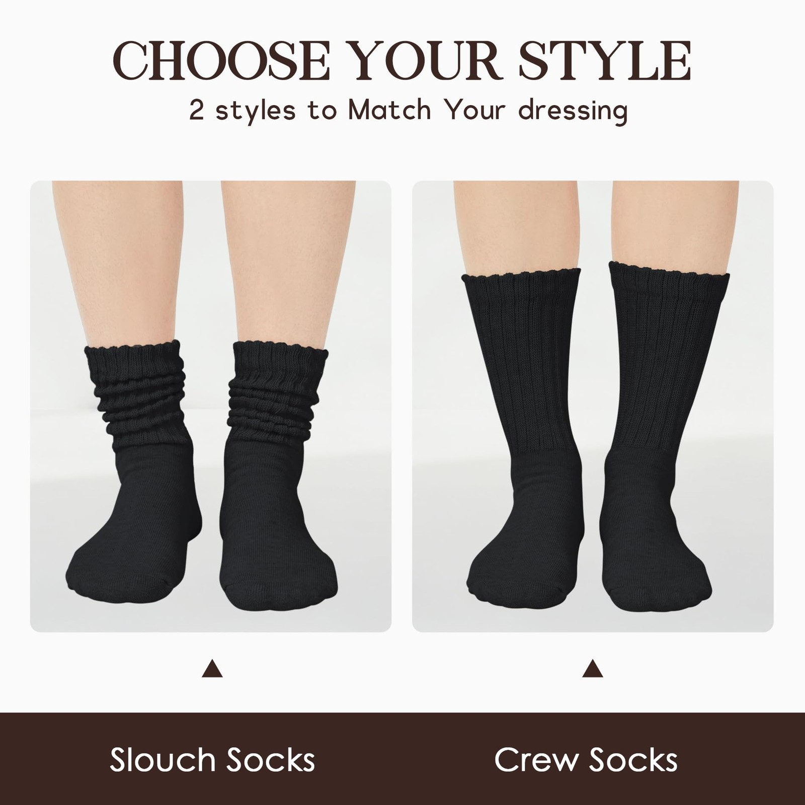 как выглядит American Trends Scrunch Crew Socks for Women Retro Slouchy One Size, Black фото