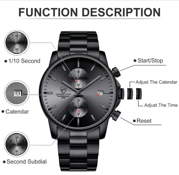 CHEETAH Multifunction Men's Watch Quartz Analog Stainless Steel Wristwatch New