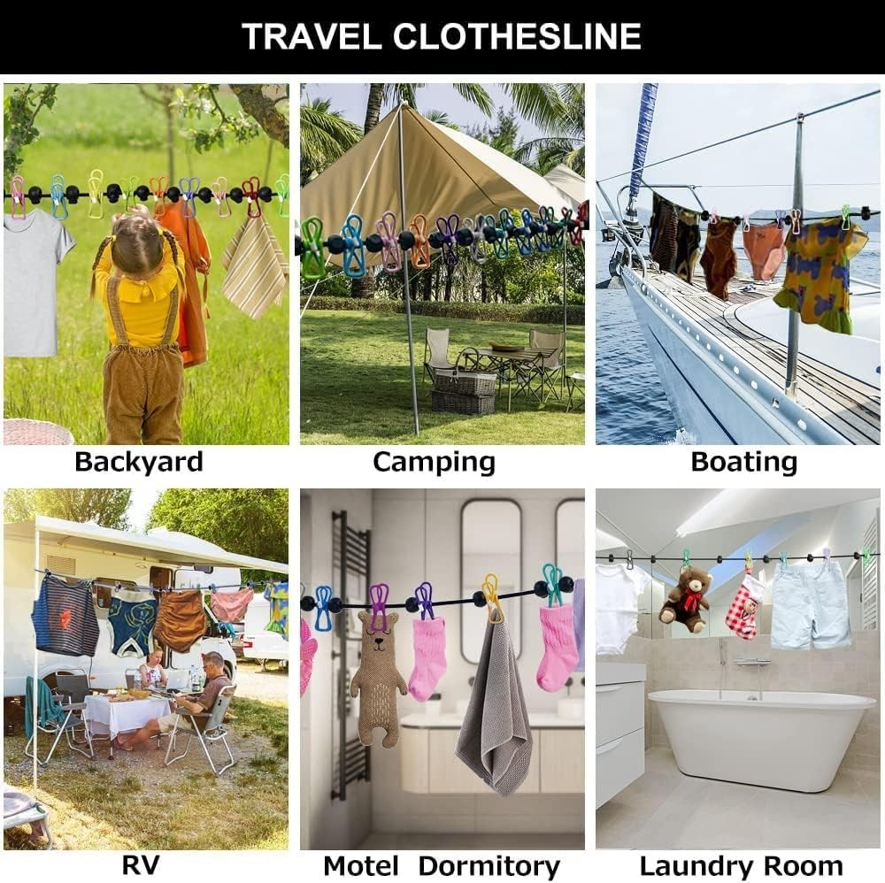 Clothesline Retractable Portable Clothesline for Travel Clothing Line with 12 Cl
