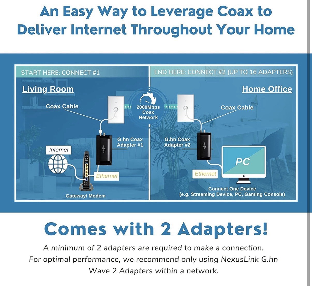 G.HN 2000 Wave 2 Ethernet Over Coax Adapter Kit GCA-20000-Kit
