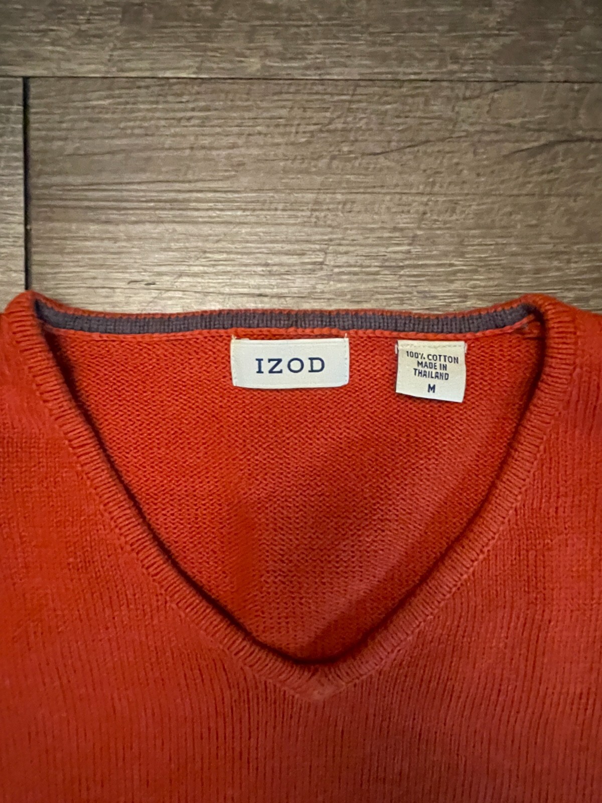 как выглядит Vintage IZOD 100 Knitted Cotton Rust Orange Preppy V Neck Sweater Vest Medium фото
