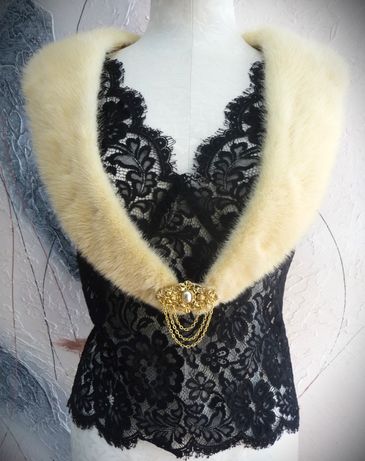 BEAUTIFUL VINTAGE GENUINE BLONDE MINK FUR STOLE WRAP COLLAR