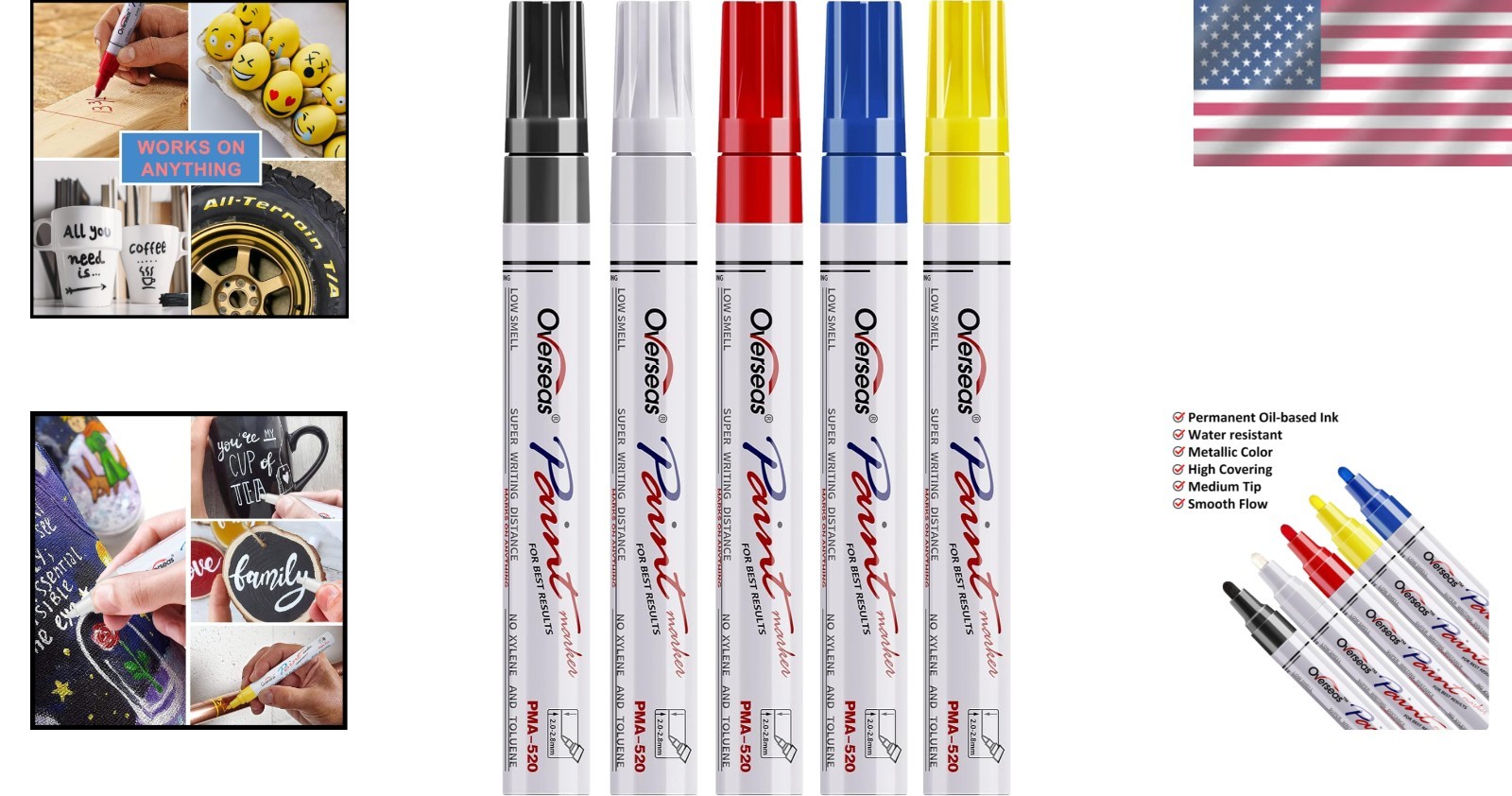 Versatile 5-Pack Paint Markers for Wood, Glass, Fabric - Permanent Vibrant