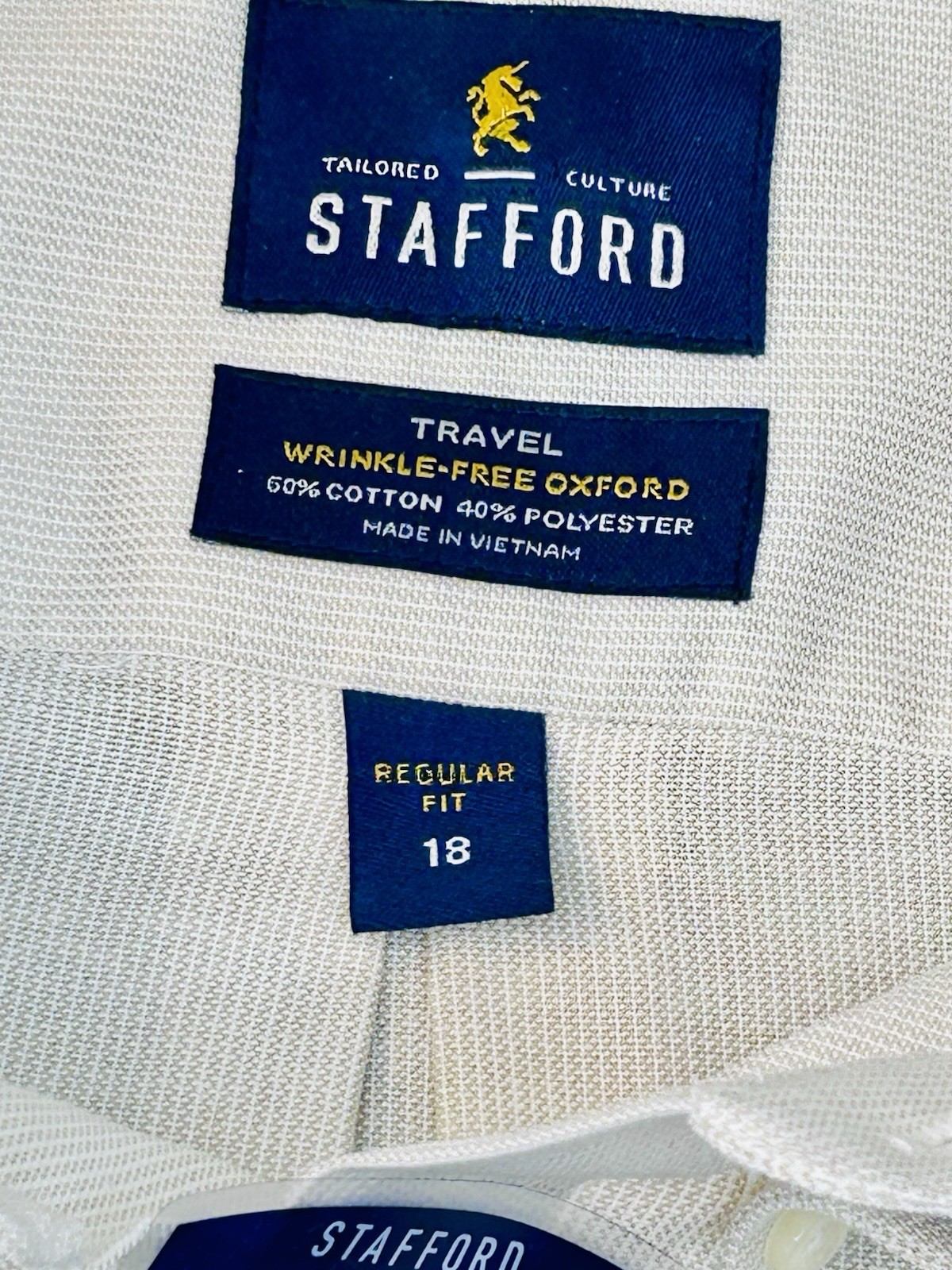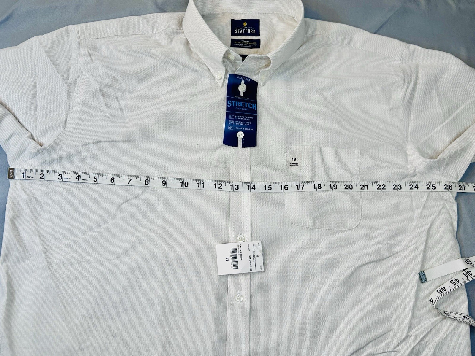 как выглядит NWT Stafford Shirt Mens 18 Wrinkle Free Oxford Travel SS Button Down NEW фото