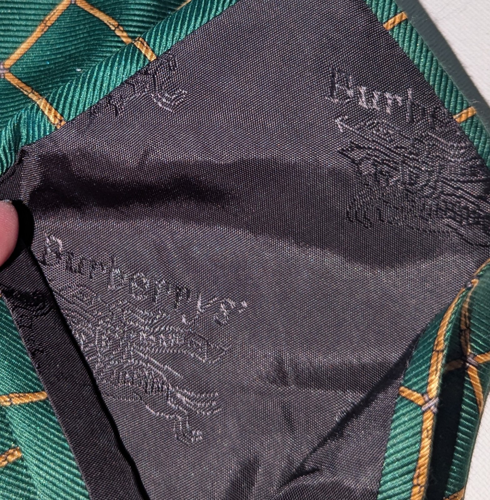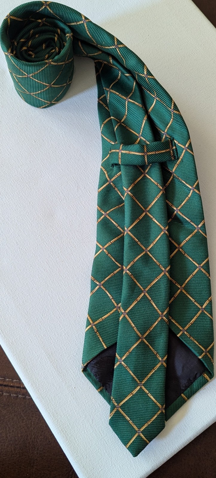 как выглядит Burberrys Plaid Green Gold 100 Silk Necktie Classic Check Tie England Vintage фото