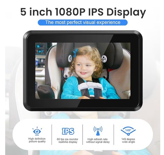 5-Inch 1080p Baby Car Monitor with Dual Cameras 360-Degree View - Easy Install