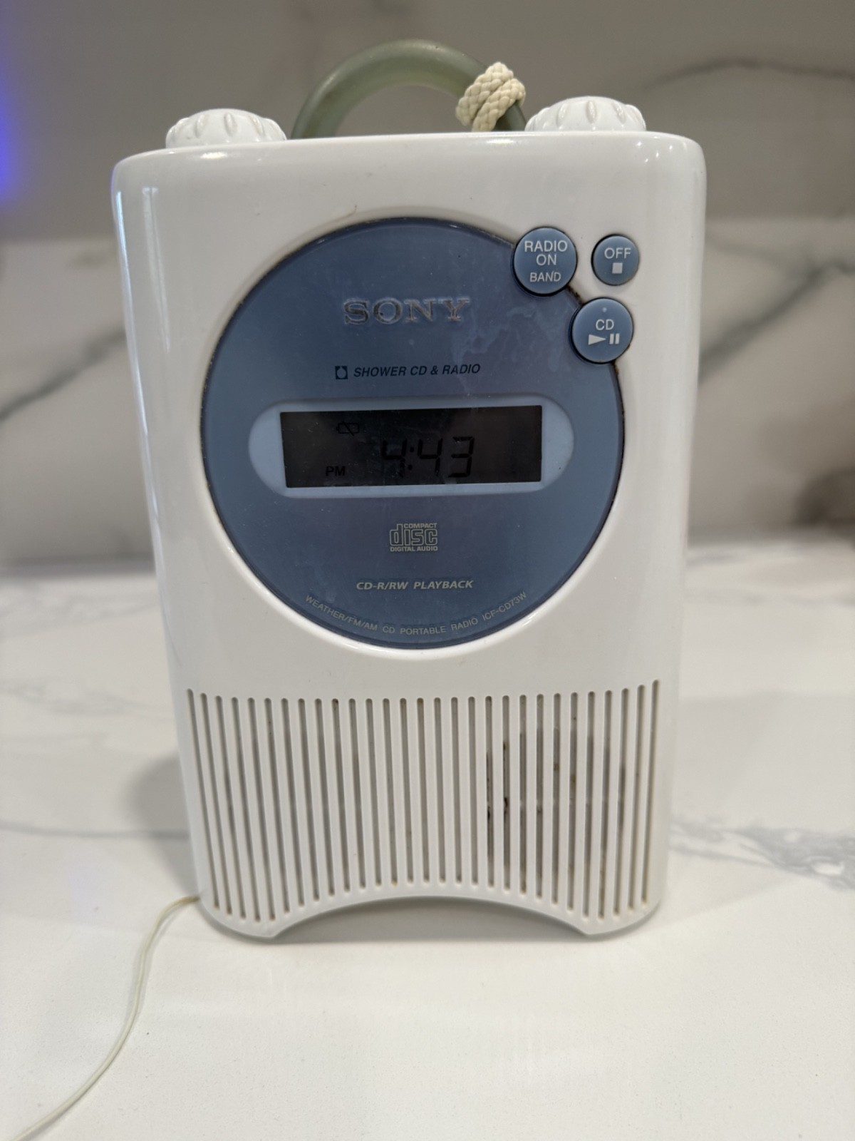 Sony Shower CD Radio ICF-CD73W Weather/FM/AM CD Portable Radio EUC