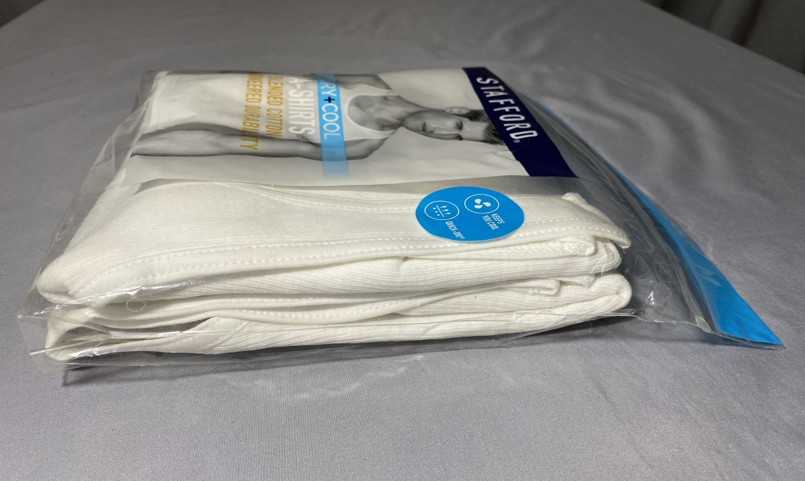 NWT Stafford 4-Pack Men's Dry Cool Blended Cotton Tank Tops A-Shirts White sz M