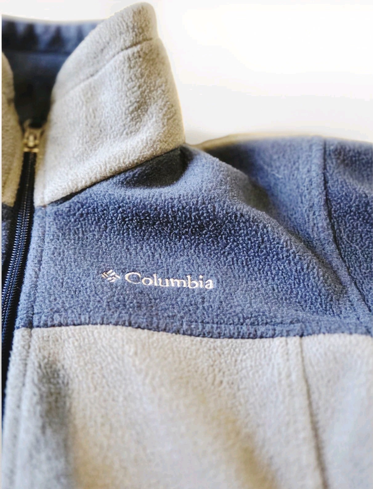 как выглядит Columbia Boys Dotswarm Omni-Heat Full Zip Fleece Jacket Blue Gray Size Med 10-12 фото