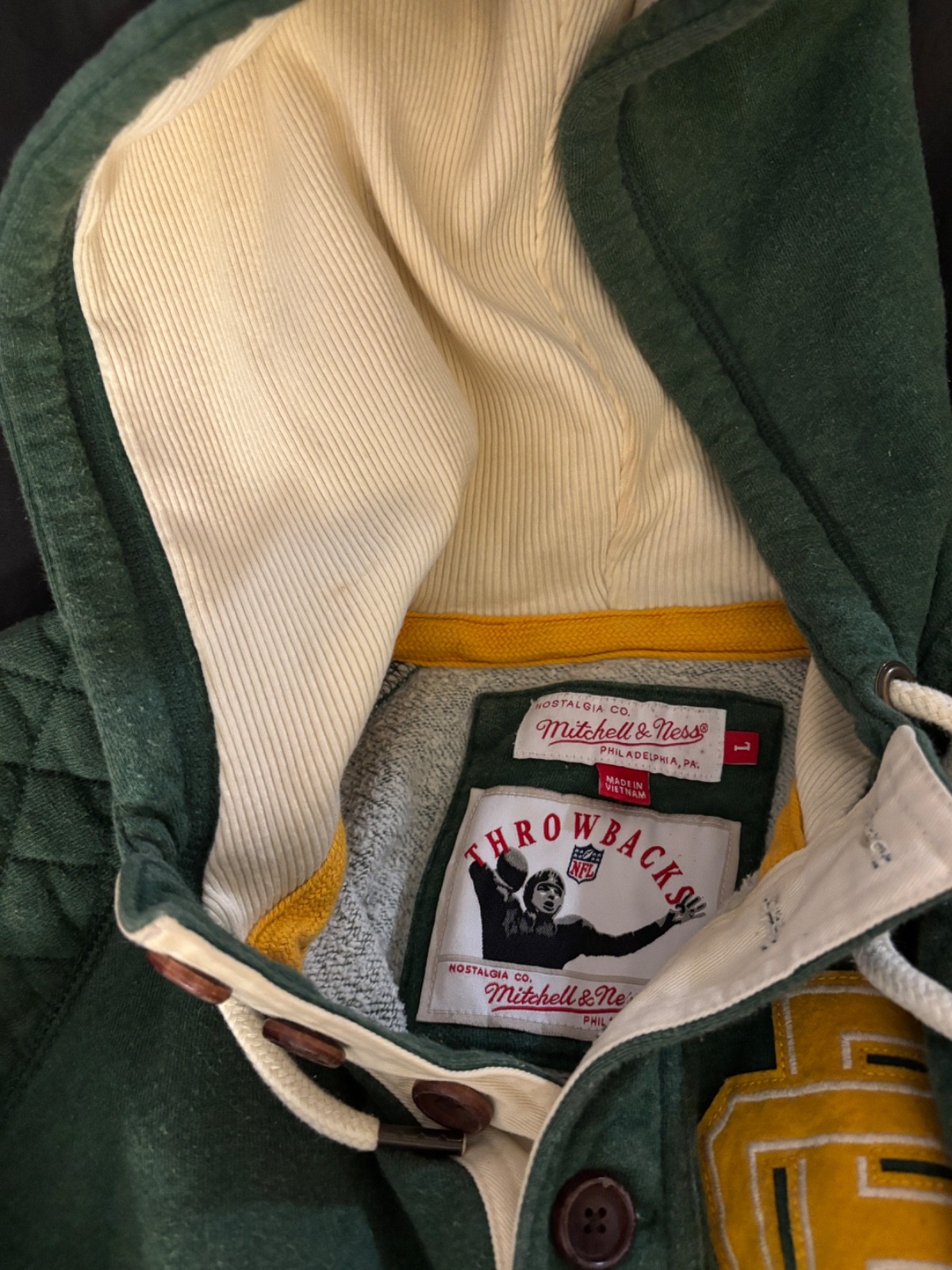 как выглядит Green Bay Packers Sweatshirt Men Medium Mitchell Ness Throwback Thermal Hoodie фото