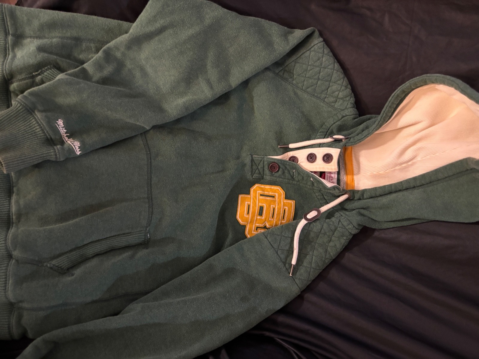 • Green Bay Packers Sweatshirt Men Medium Mitchell Ness Throwback Thermal Hoodie
