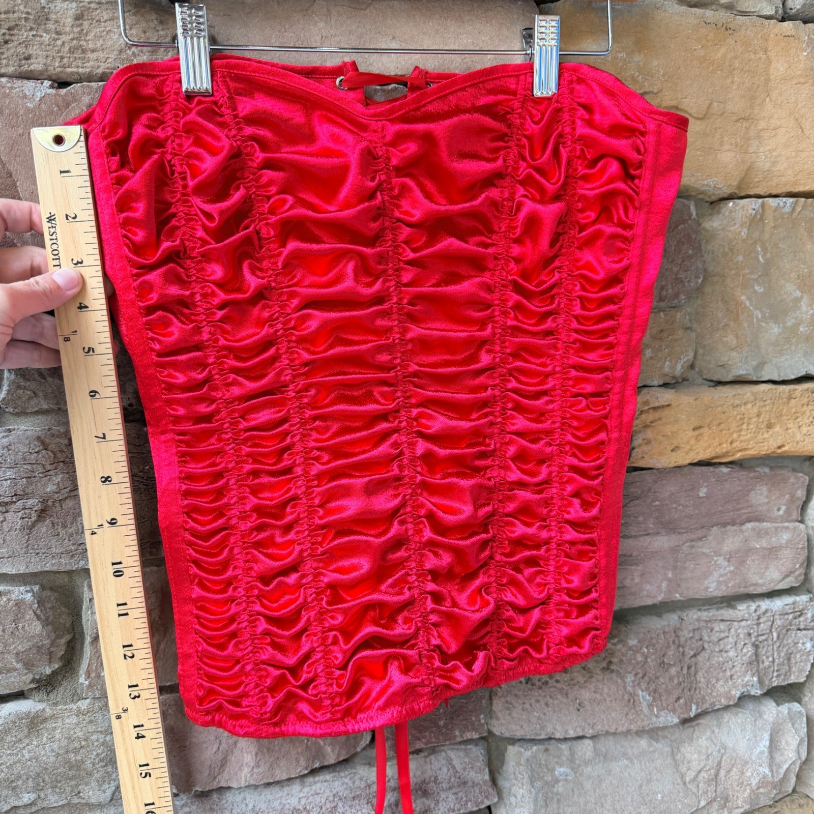 Shirley of Hollywood 36 Red Corset Top Ruched Lace Up Back Women Bustier Pin Up
