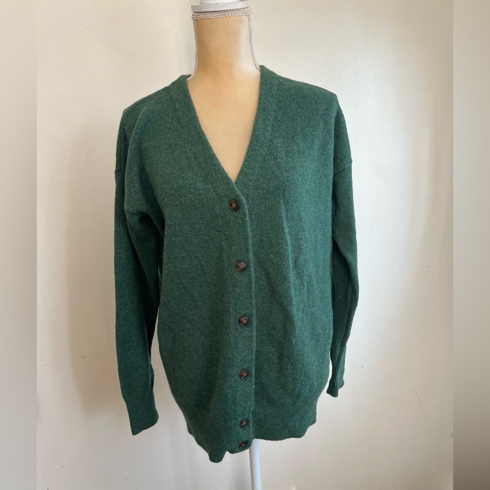 Madewell V neck relaxed cardigan merino wool blend small green natural fibers