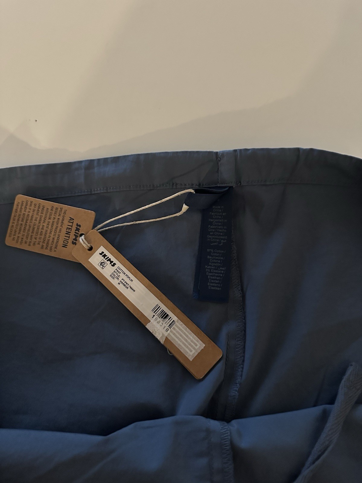 как выглядит NEW Skims Cotton Poplin Straight Leg Lounge Pants Harbor Blue M Wide Leg Relaxed фото
