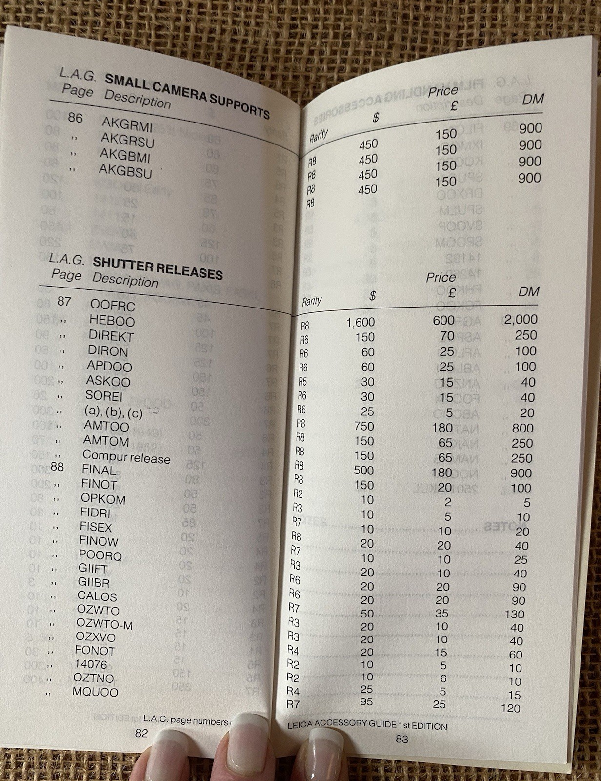 • Leica Original International Price Guide New 5th Edition 1991 Hove