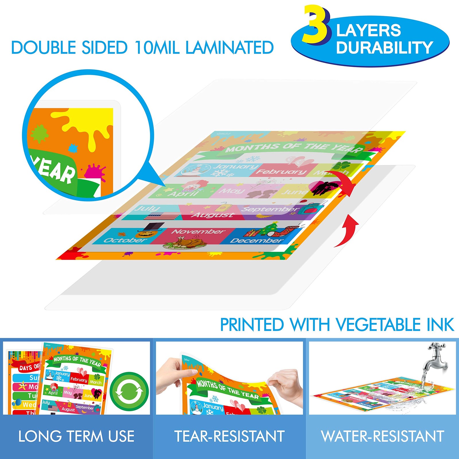 как выглядит Gethelud Days of the Week, Months Year 11.4"W x 16.1"H, Multicolor фото