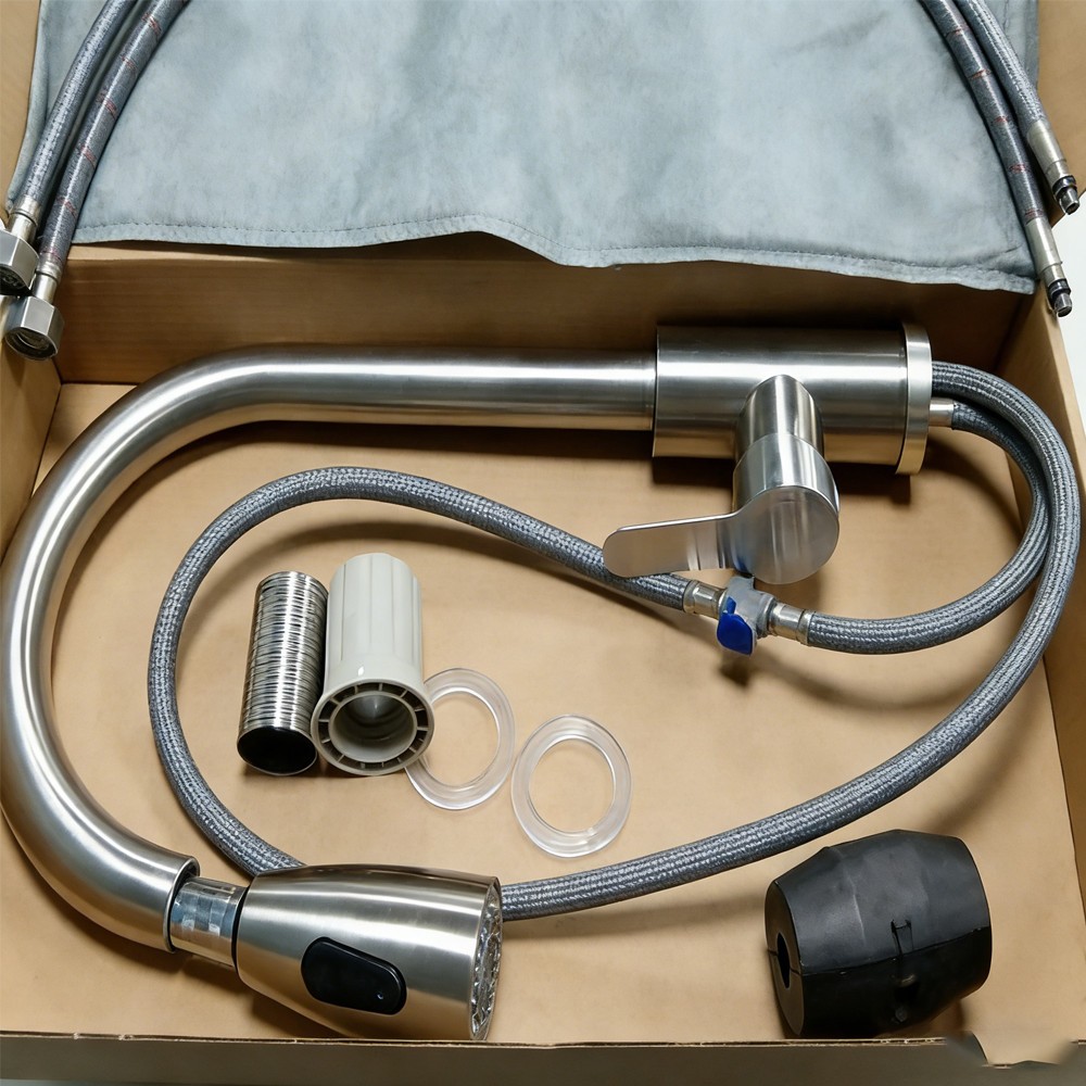 как выглядит Kitchen Sink Faucet Brushed Nickel Single Handle Swivel Pull Down Sprayer Mixer- фото