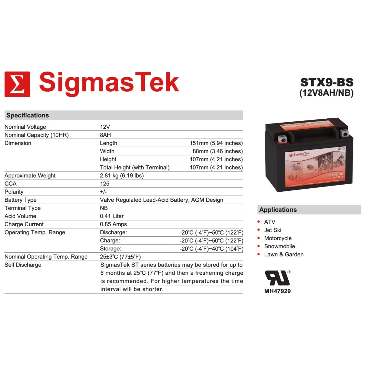 STX9-BS Battery for YTX9-BS Maintenance-Free ATV Quad Motorcycle Scooter Moped