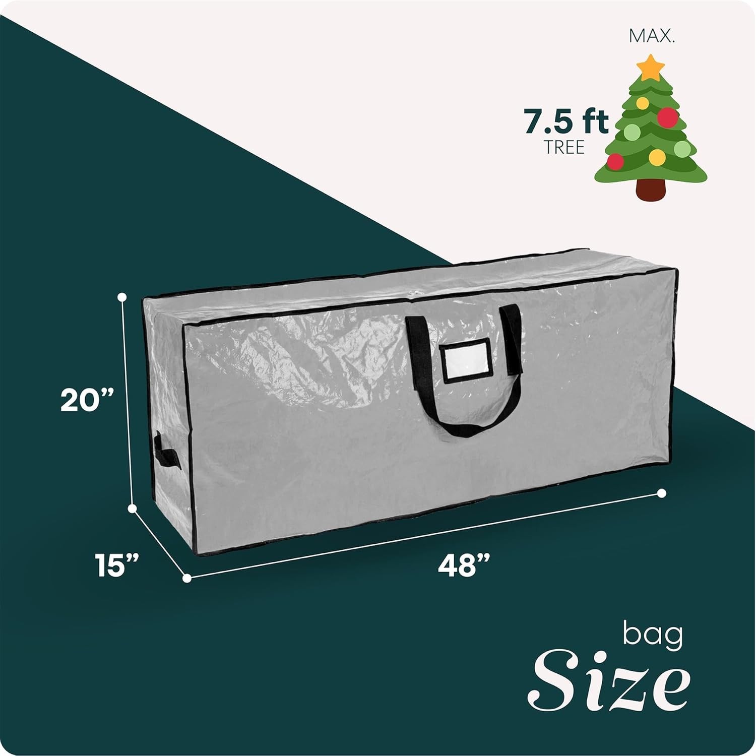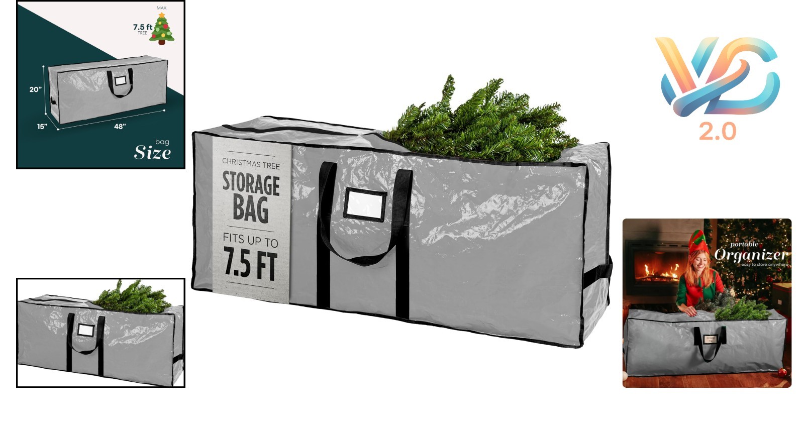 Christmas Tree Storage Bag 7.5 Ft Waterproof Durable Zipper Handles Grey