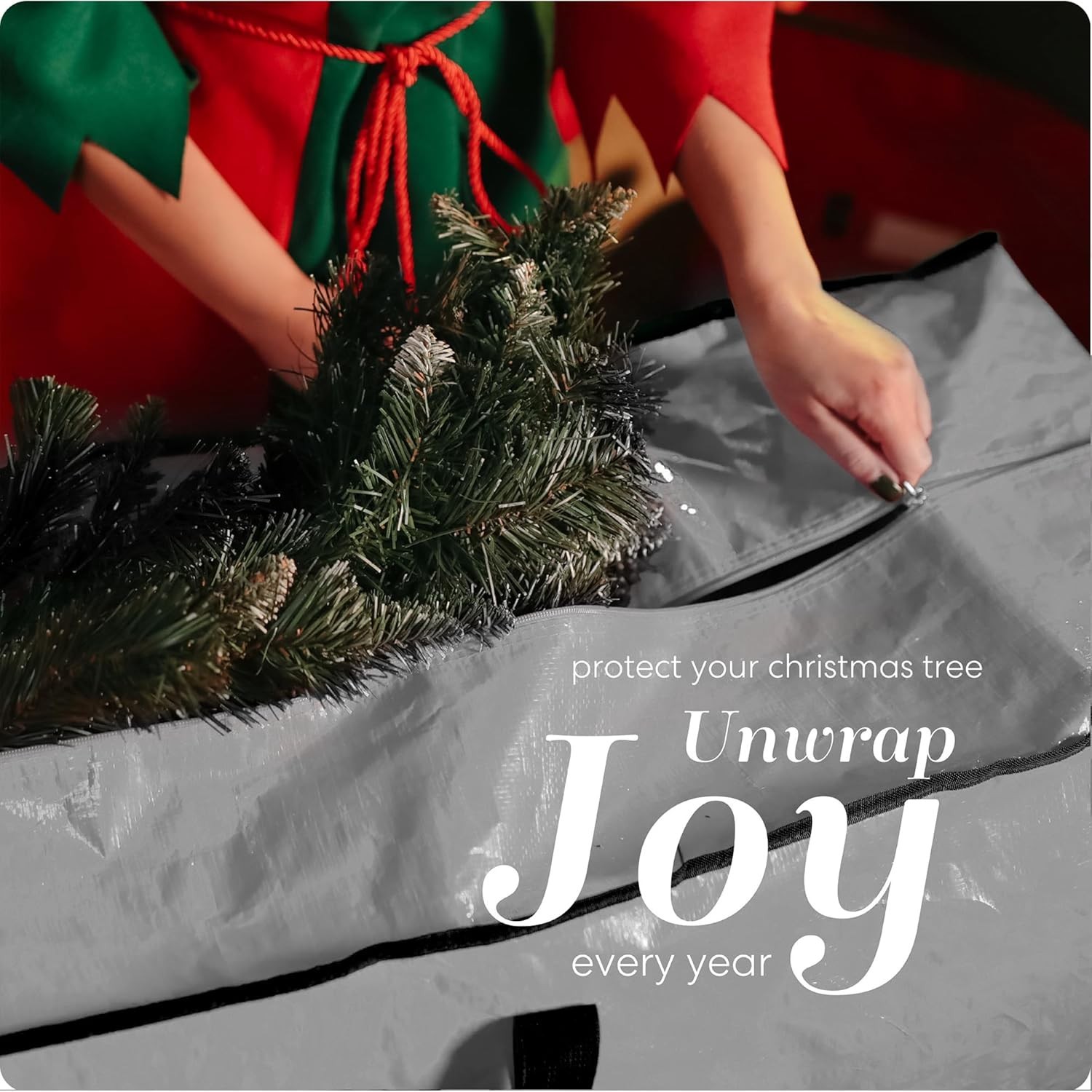 как выглядит Christmas Tree Storage Bag 7.5 Ft Waterproof Durable Zipper Handles Grey фото