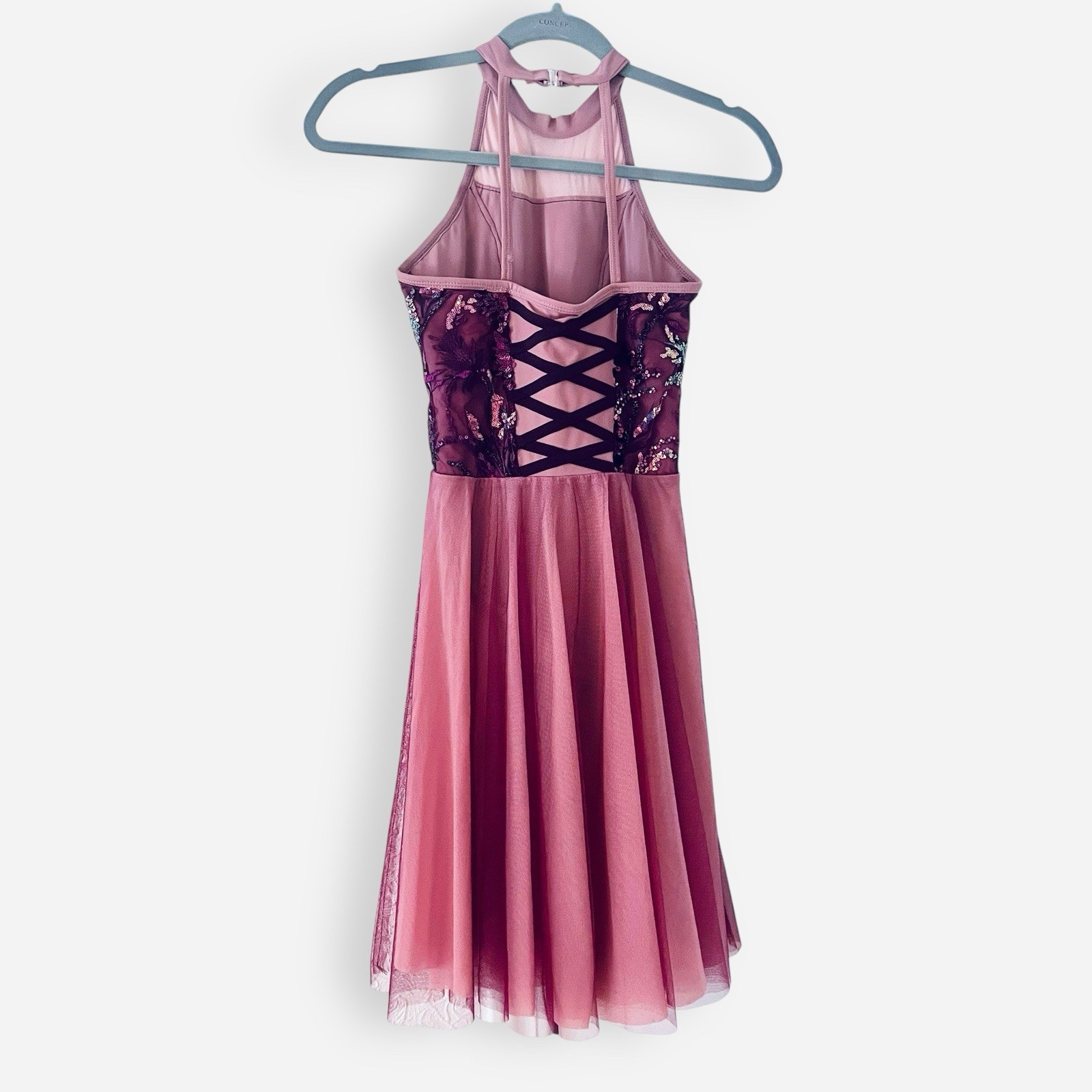 Revolution Dancewear Dance Costume Girls LC Large Pink Purple Sequin I Will Wait