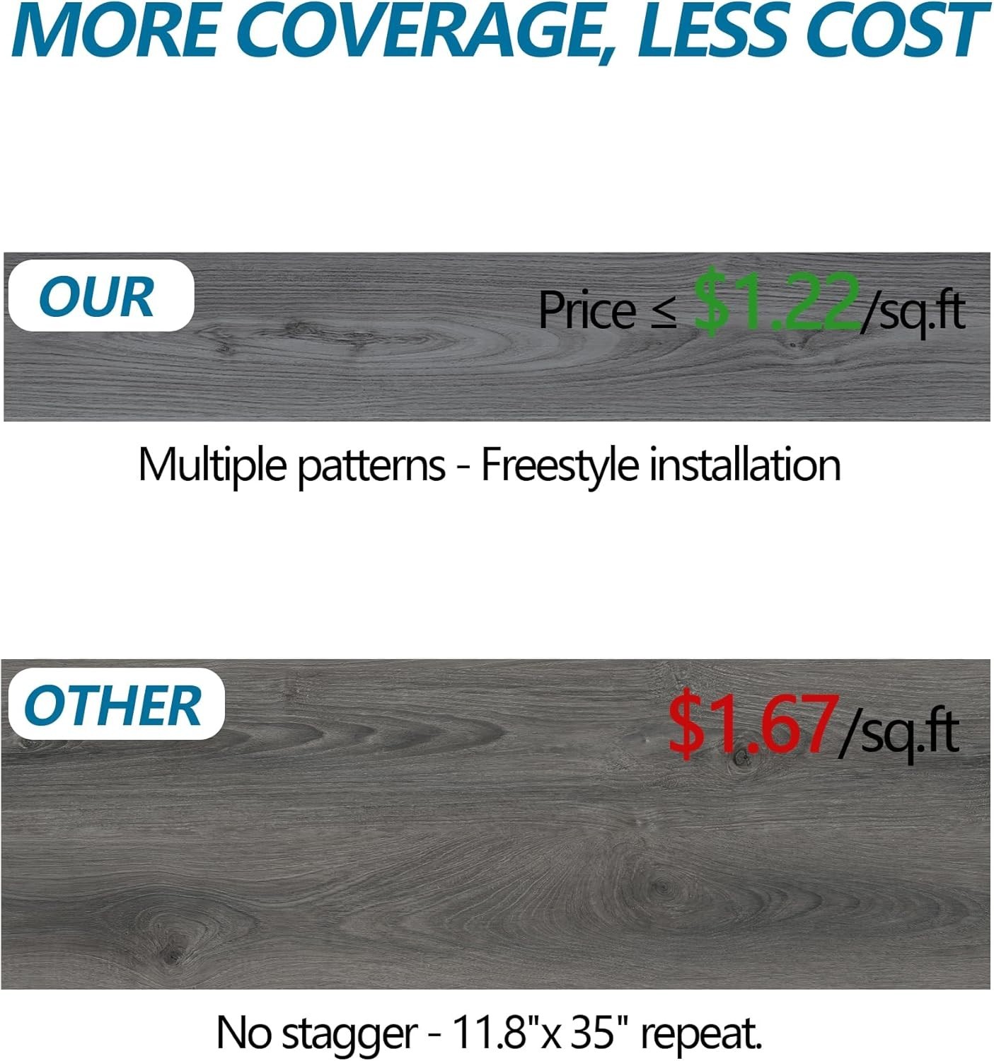 6 Sq.Ft Wood Peel and Stick Floor Tiles Brown Vinyl Waterproof No Residue