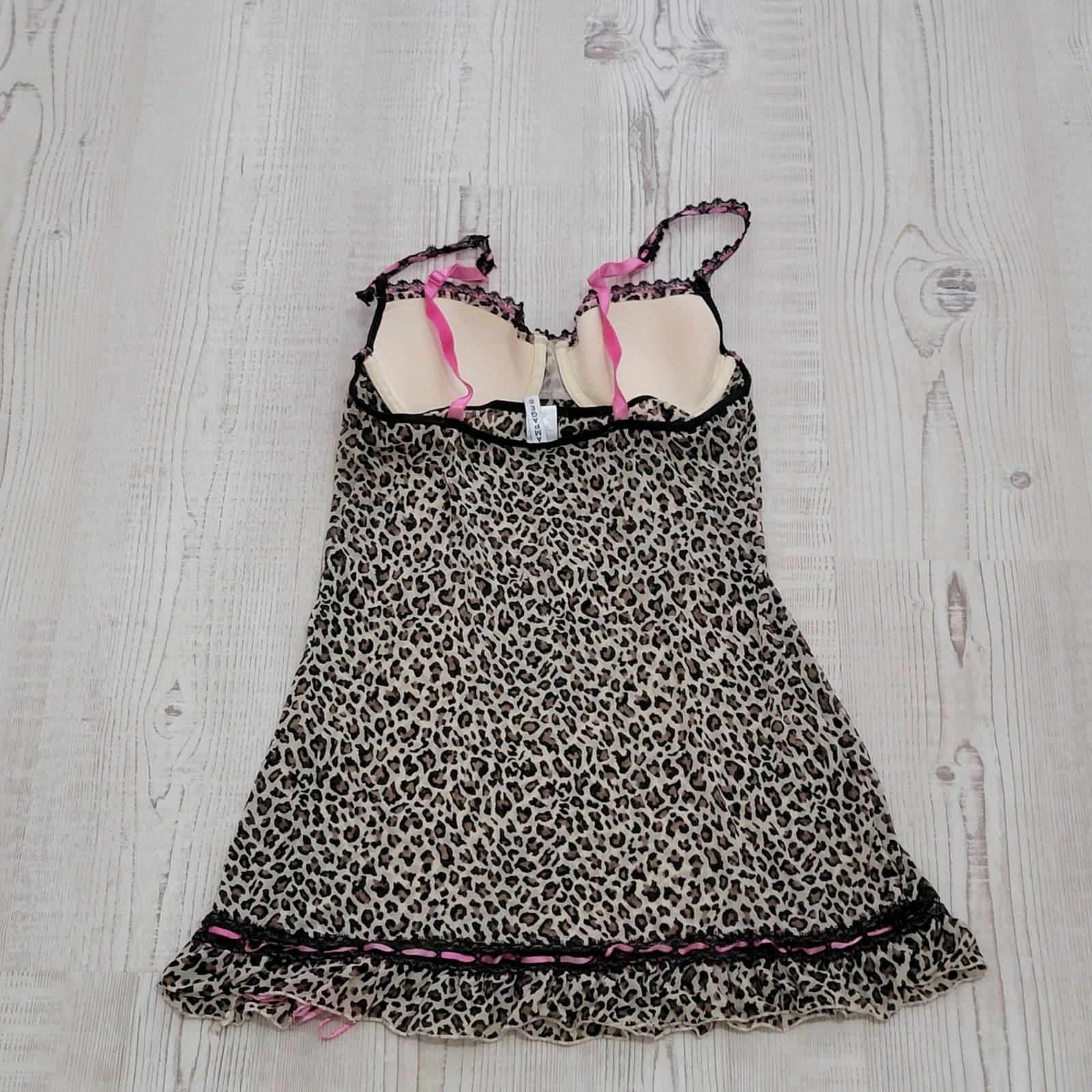 Rampage Y2K Leopard Print Slip Babydoll Lingerie Dress With Pink Accents