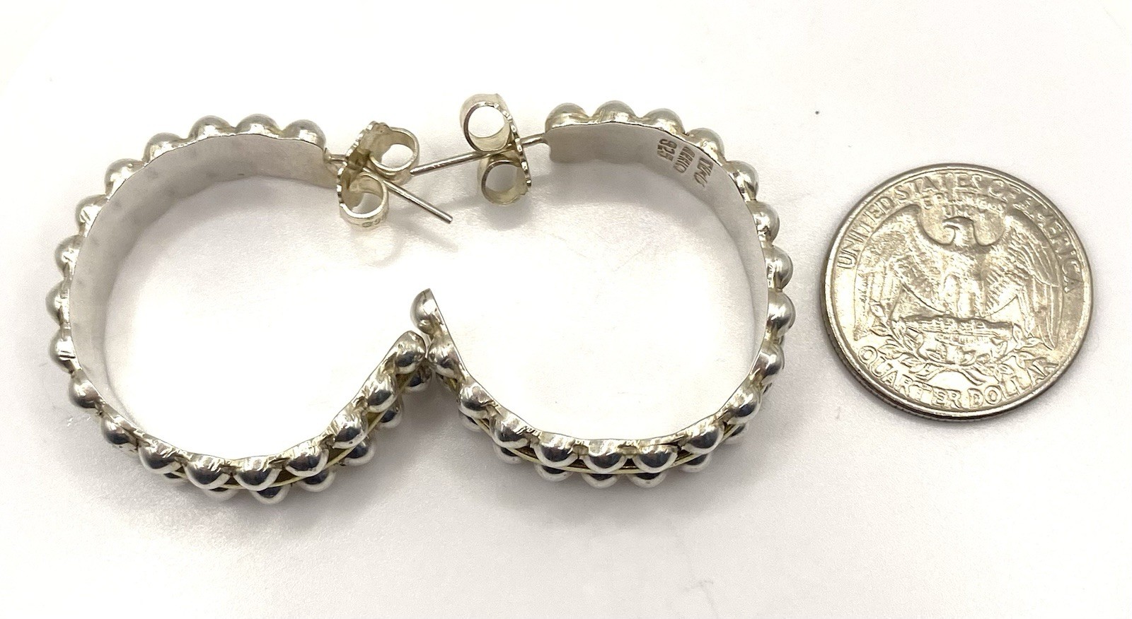 Taxco Mexico Sterling Silver / 925 Hoop Pierced Earrings