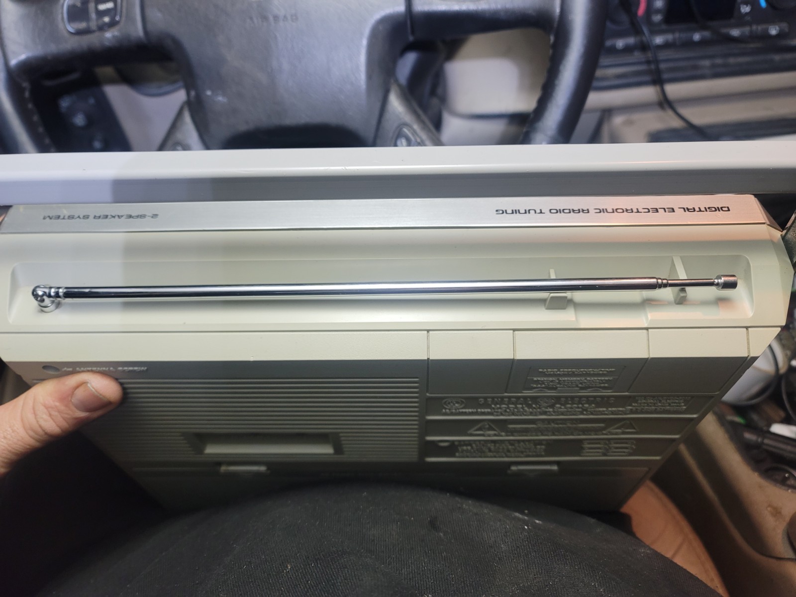 General Electric 3-6015A Silver Boombox AM/FM Cassette Recorder Clock Stereo
