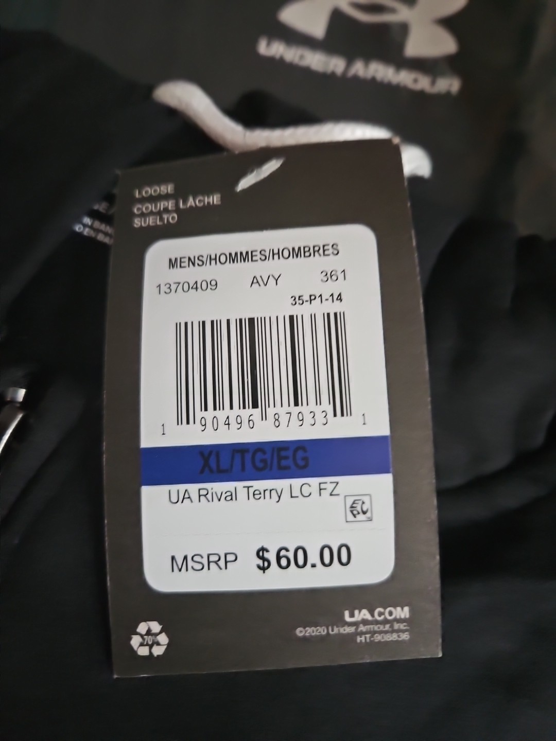 Under Armour UA Light Hoodie Men's Rival Terry Full-Zip - Style 1370409 XL.