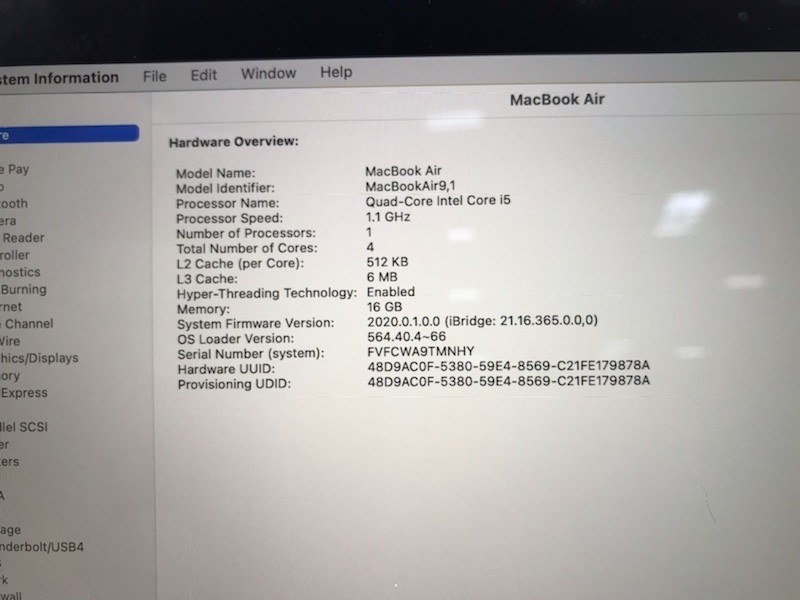 APPLE MACBOOK AIR 2020 A2179 13 1.10GHz i5 16GB 256GB GRADE D