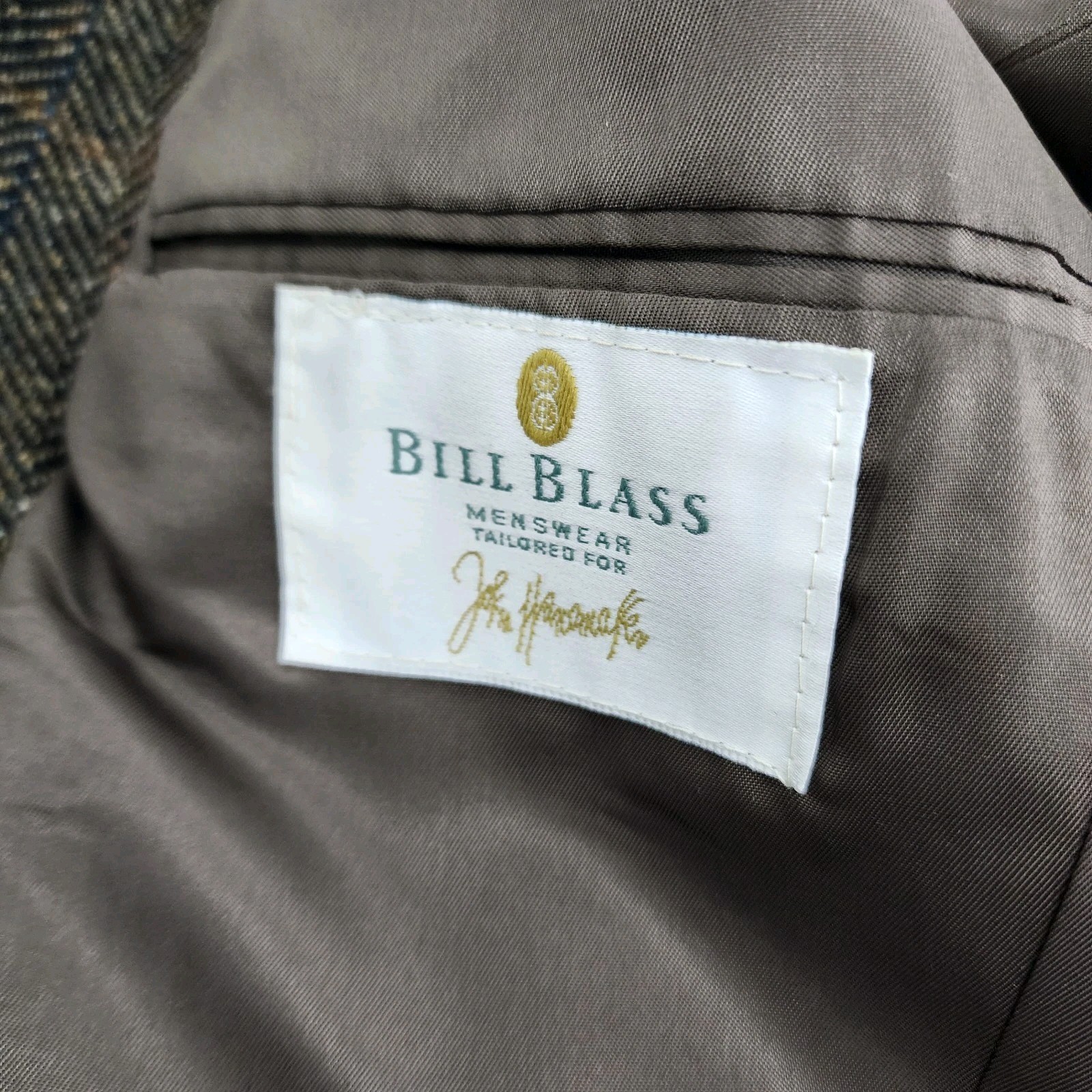 Bill Blass Mens Blazer 42R Tweed Herringbone Plaid Brown Wool Sport Coat READ