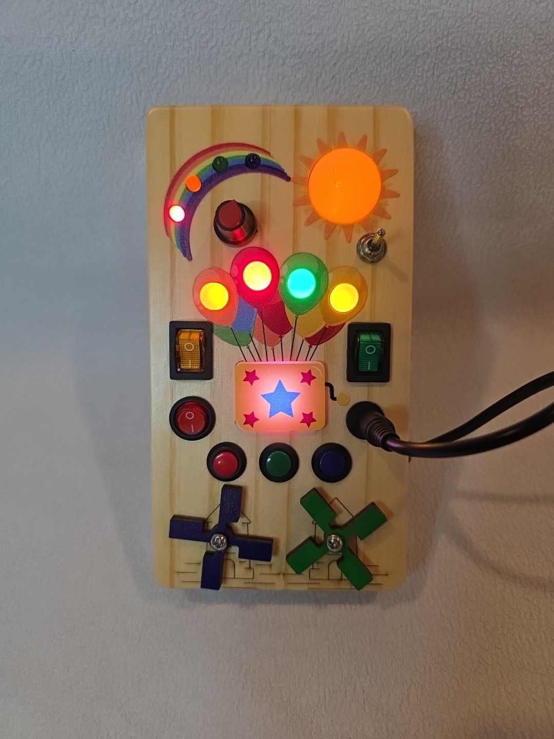 как выглядит Montessori Wooden Busy Board With 8 LED Light Switches Sensory Toys Light Switch фото
