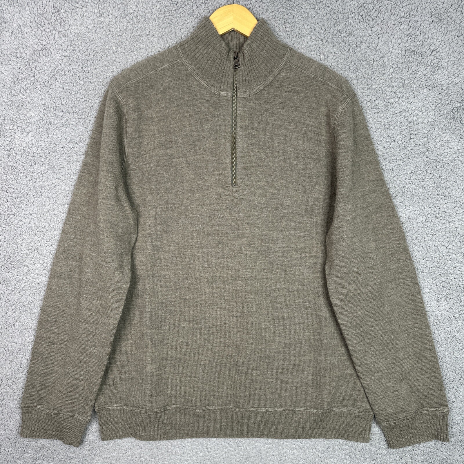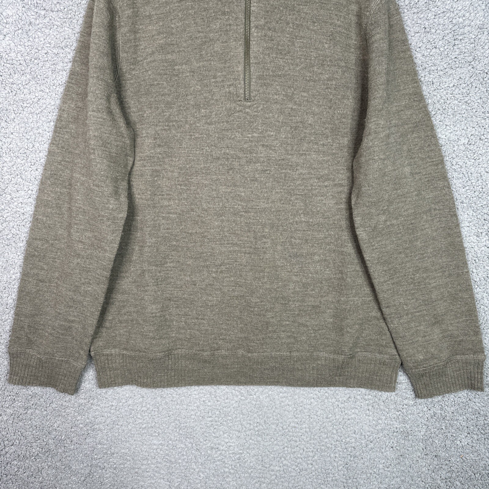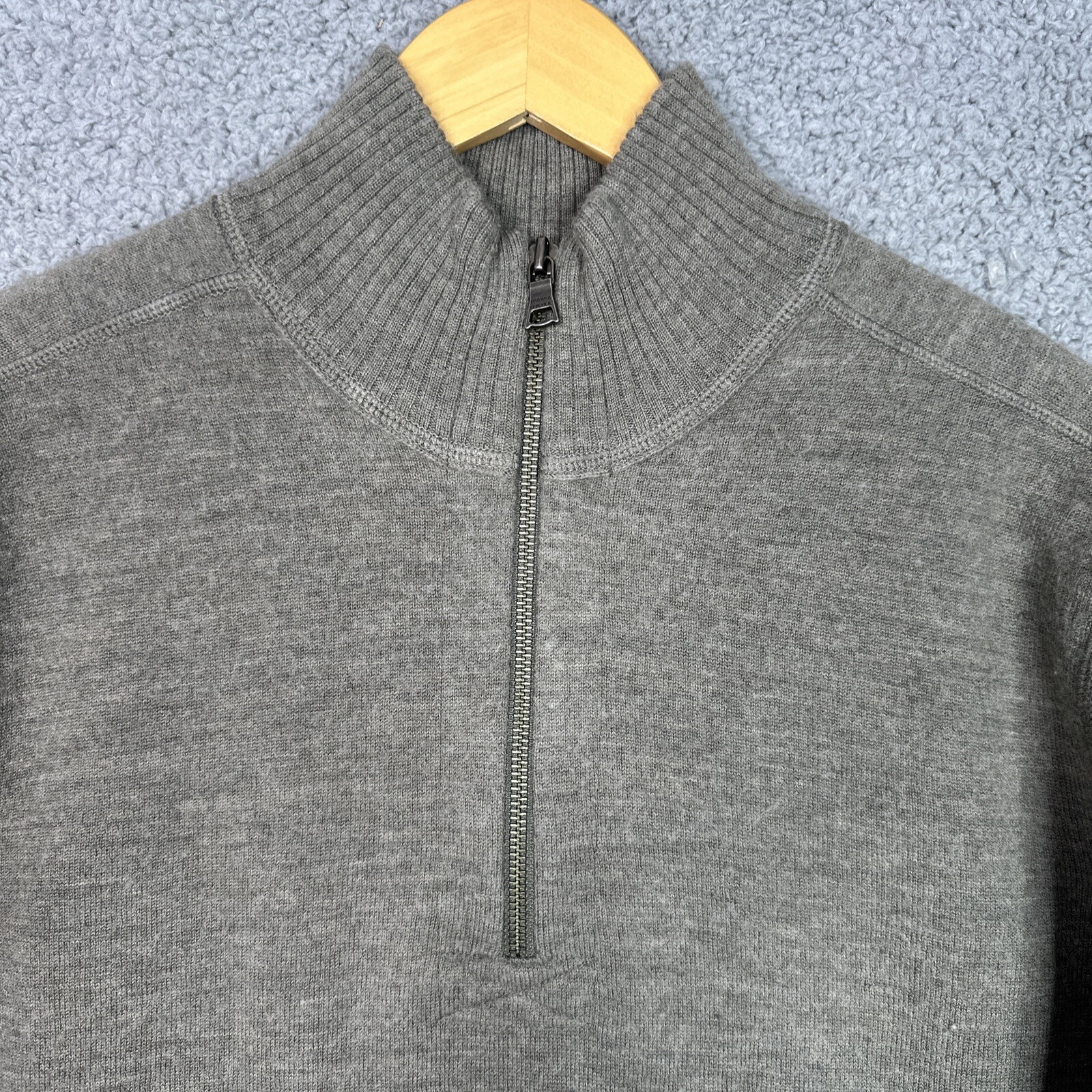 как выглядит Banana Republic Mens XL Sweater 100 Wool 1/4 Zip Gray Olive Pullover Knit Warm фото