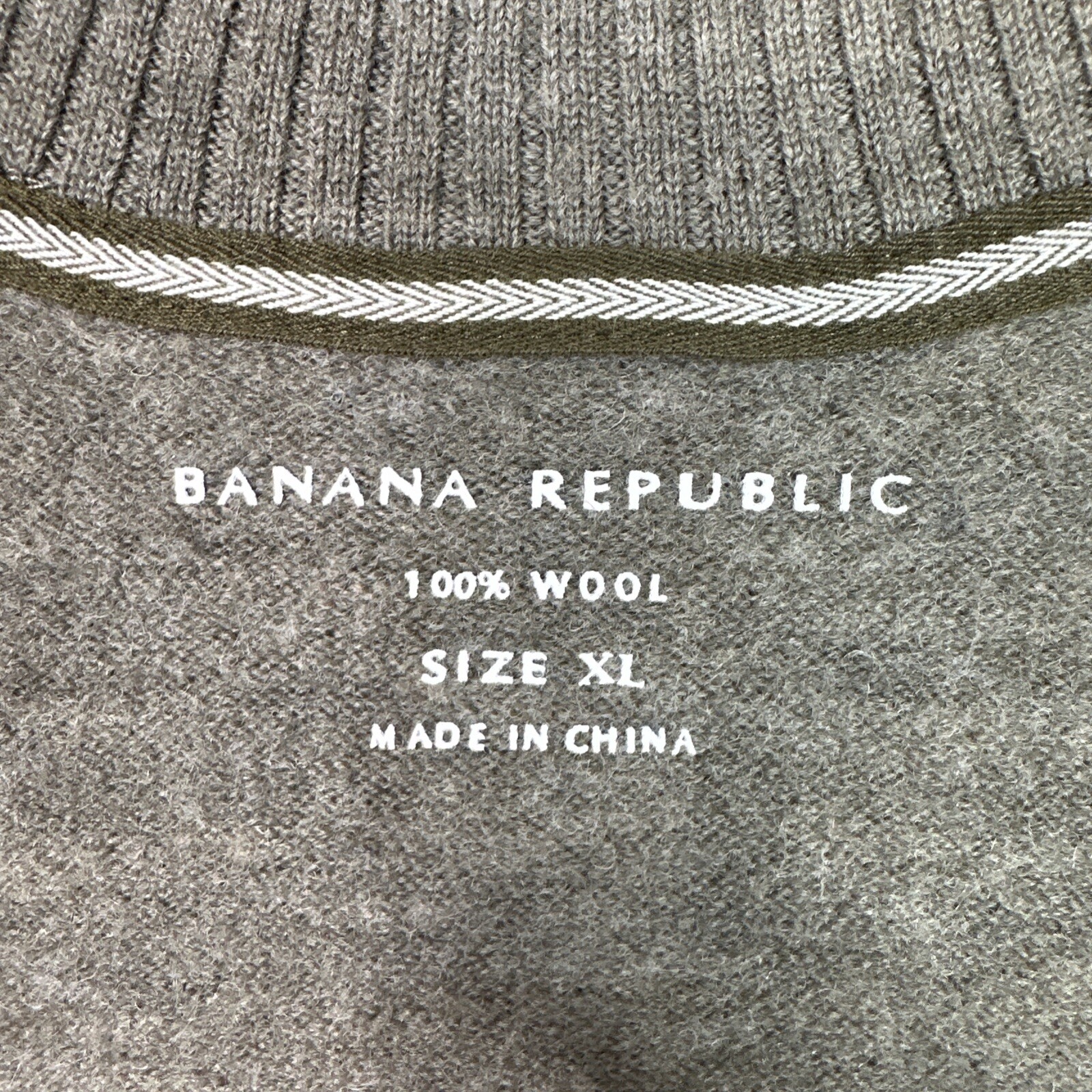 Banana Republic Mens XL Sweater 100 Wool 1/4 Zip Gray Olive Pullover Knit Warm