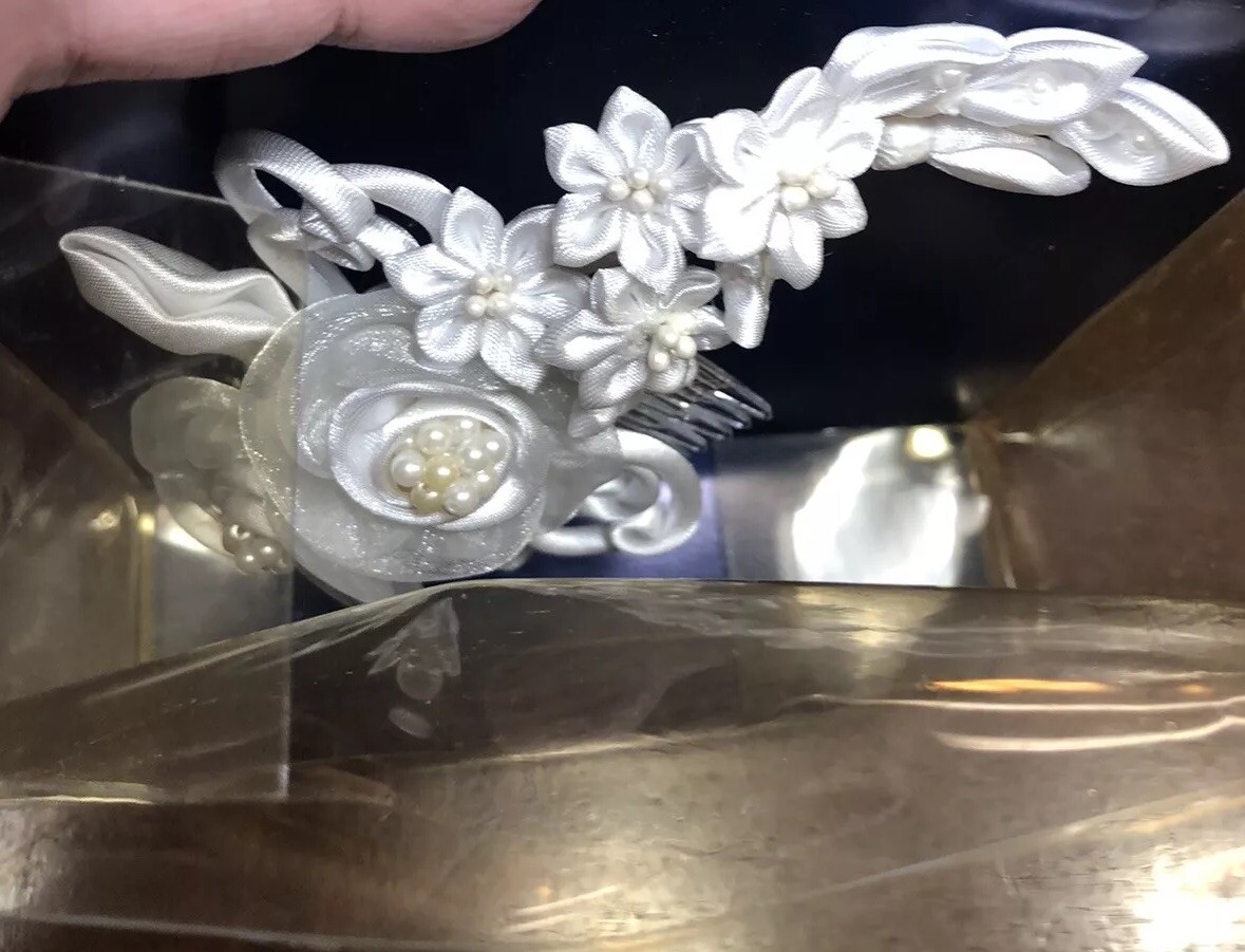 Bridal Head Piece White Pearl Sequin Beaded Wedding Comb Veil Bride Vtg 90 s