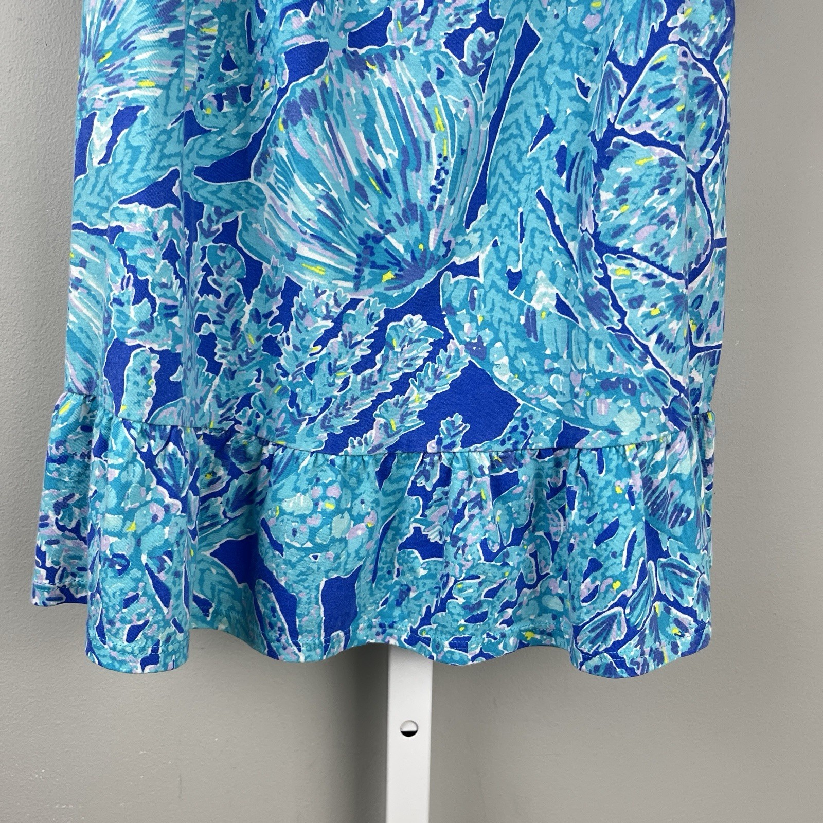 Lilly Pulitzer Girls L 8/10 Jaci Dress Blue Aqua Seashell Coral Print Preppy