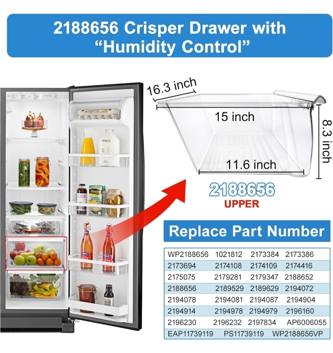как выглядит 2 Pack Upgraded 2188656 Fridge Crisper Drawer UPPER Humidity Control Drawer фото