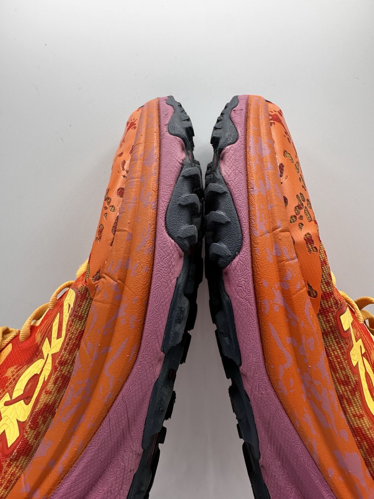 как выглядит Hoka Speedgoat 6 Trail Running Shoes Womens 10.5 Orange Red Yellow Vibram фото
