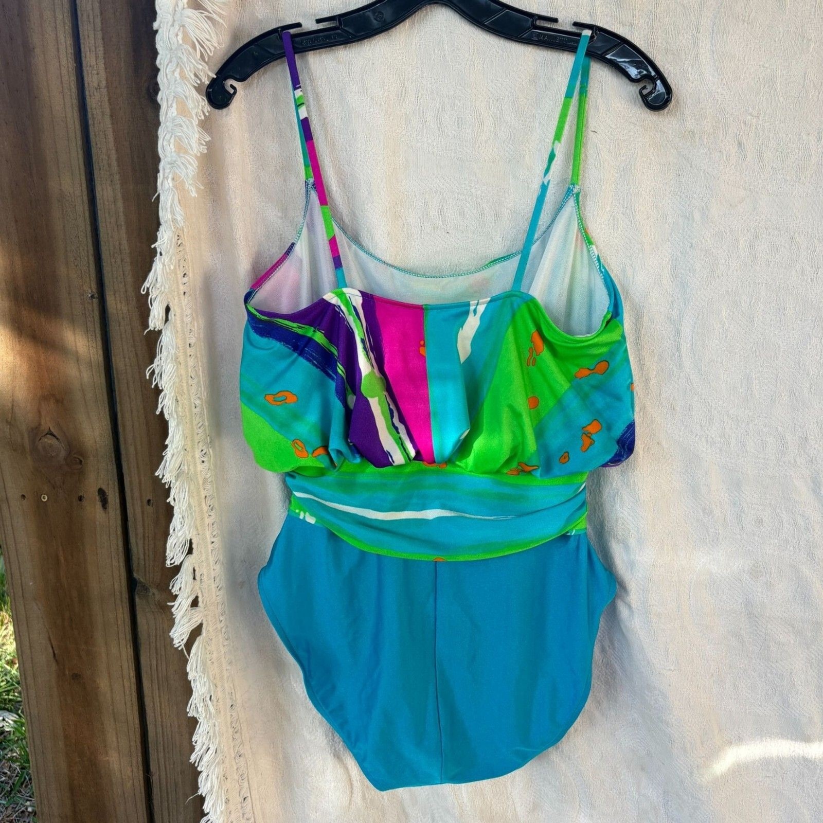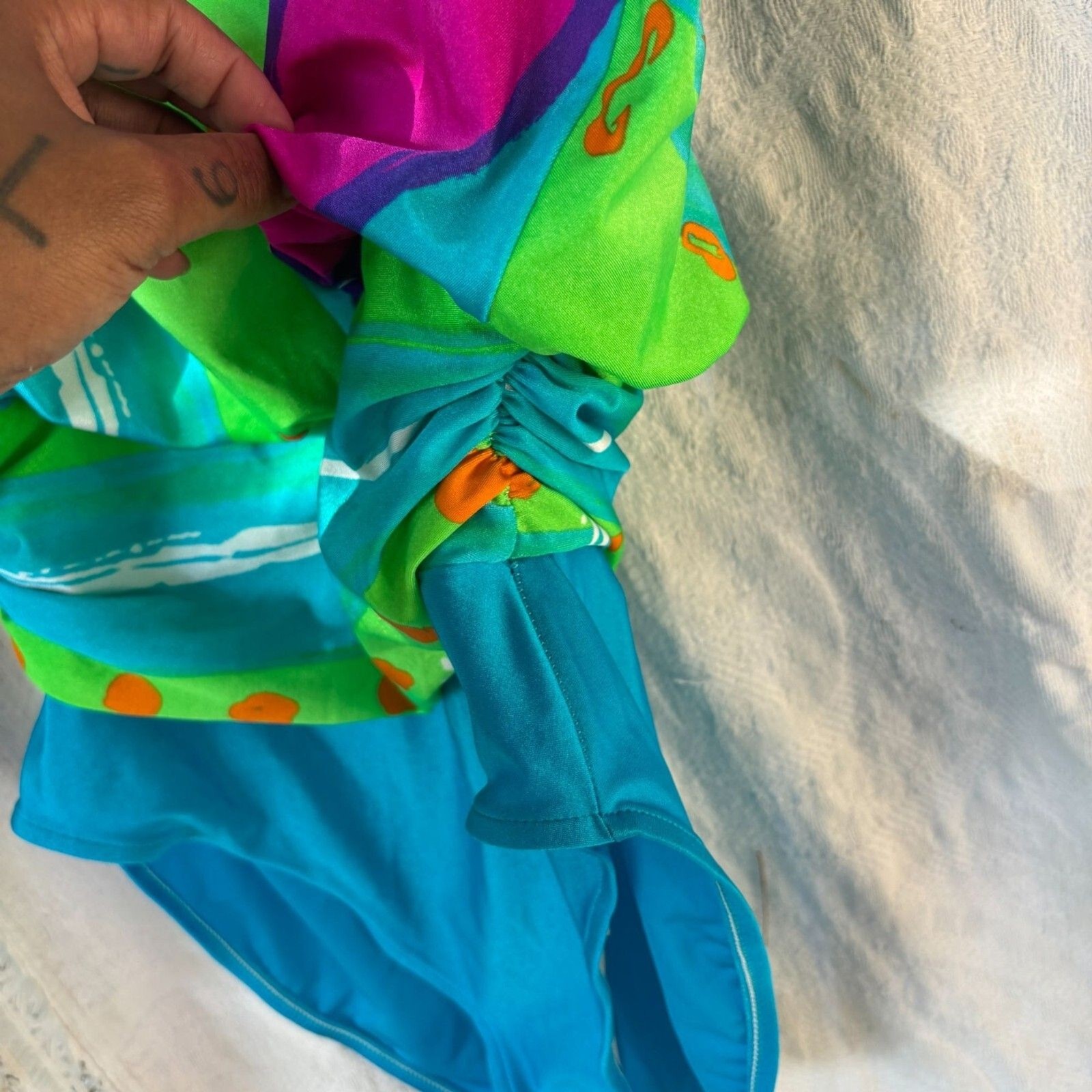 Vintage 80s COLE Of CALIFORNIA High Cut Leg Shimmery Bright SWIMSUIT Sz 14