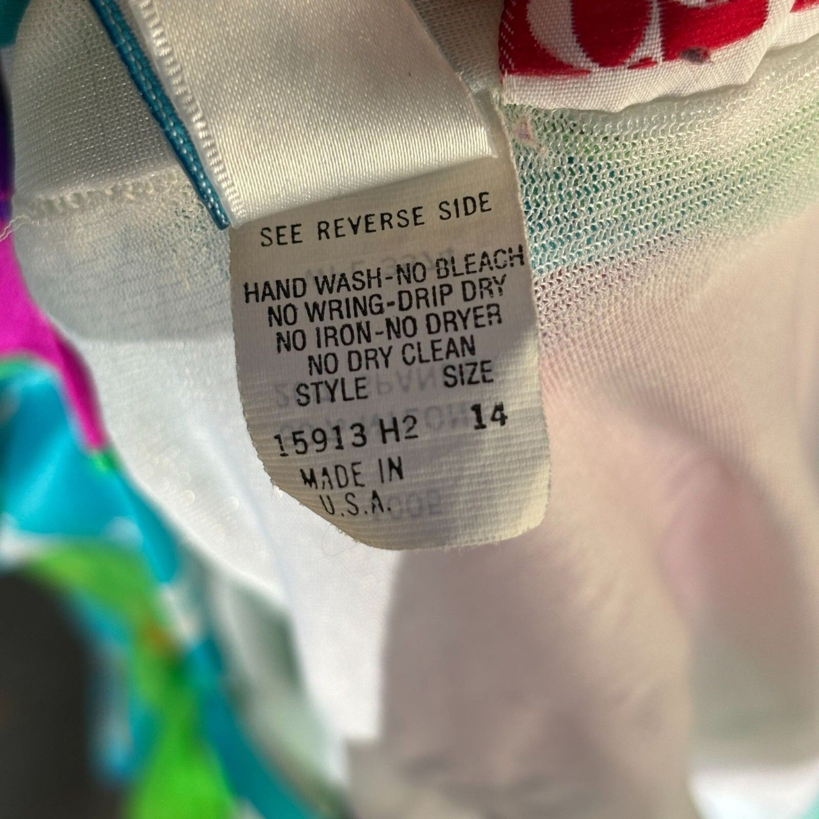 как выглядит Vintage 80s COLE Of CALIFORNIA High Cut Leg Shimmery Bright SWIMSUIT Sz 14 фото