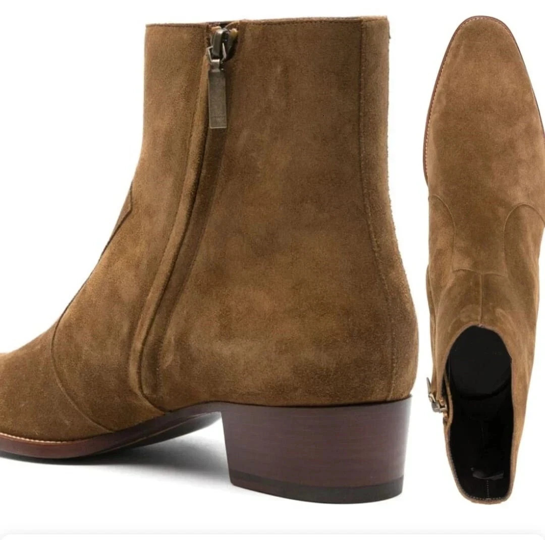 New Handmade Brown Genuine Suede Leather Formal Dress Ankle Zipper Boots For Men