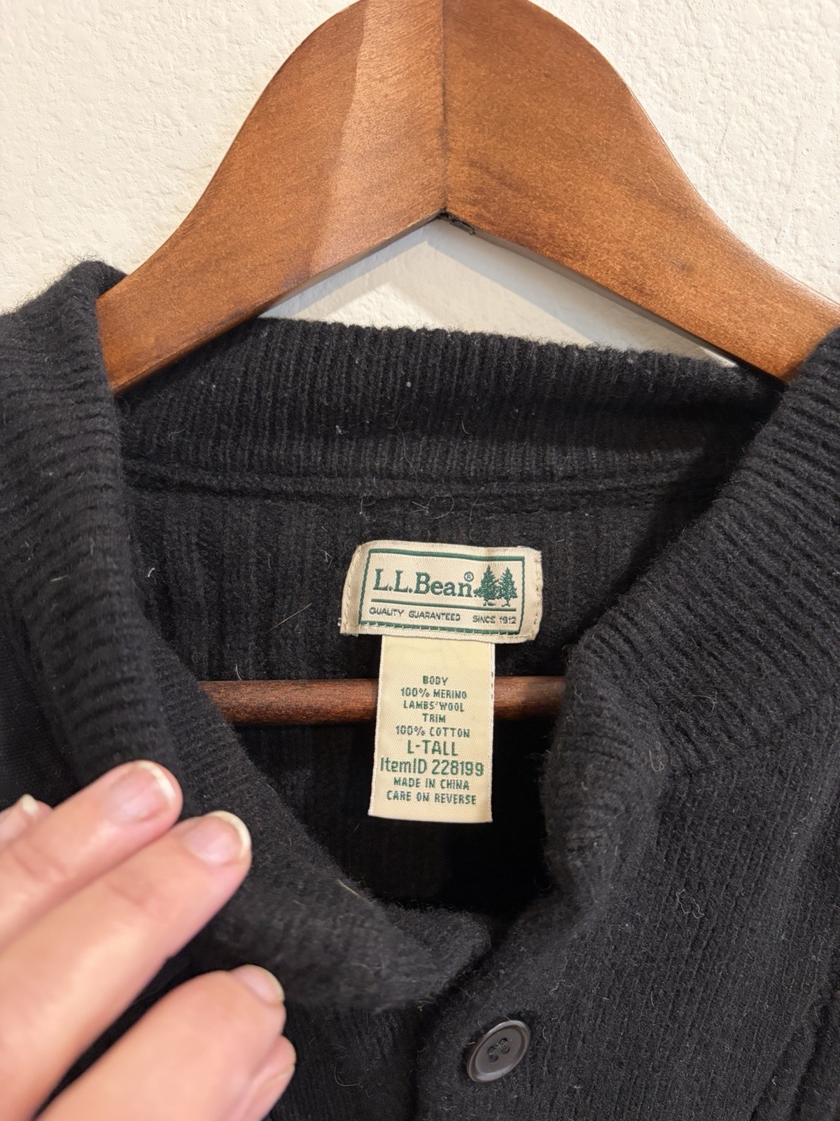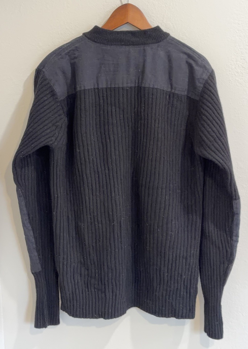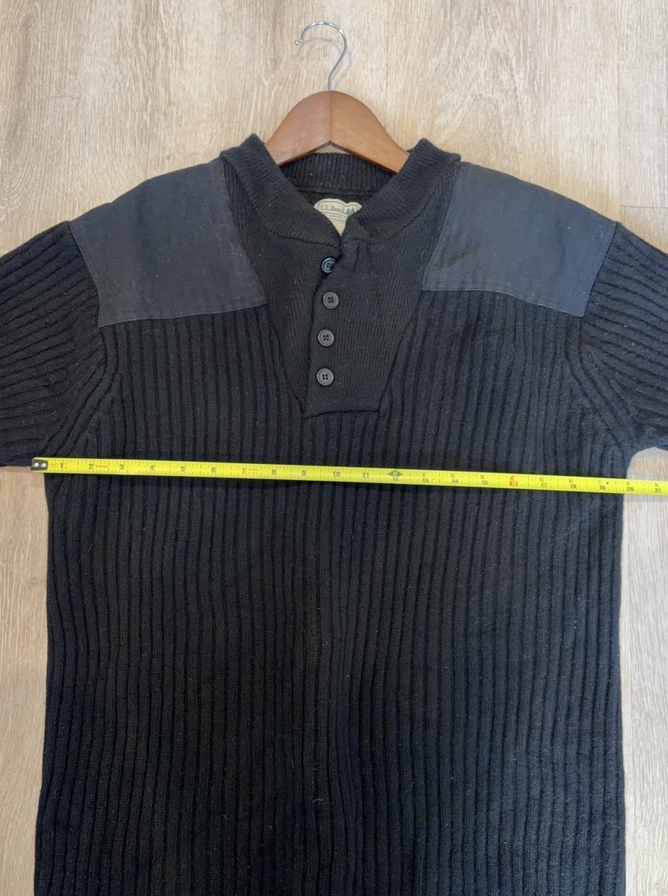 Vintage LL Bean 100 Wool Ribbed Knit Military Elbow Patch Commando Sweater Sz L