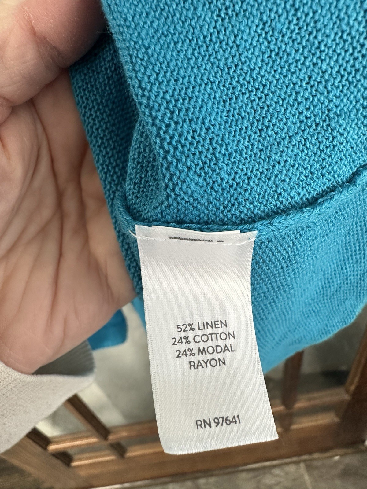 как выглядит J Jill Button Cardigan Large Petite Blue Linen Blend Knit Sweater Career Teacher фото