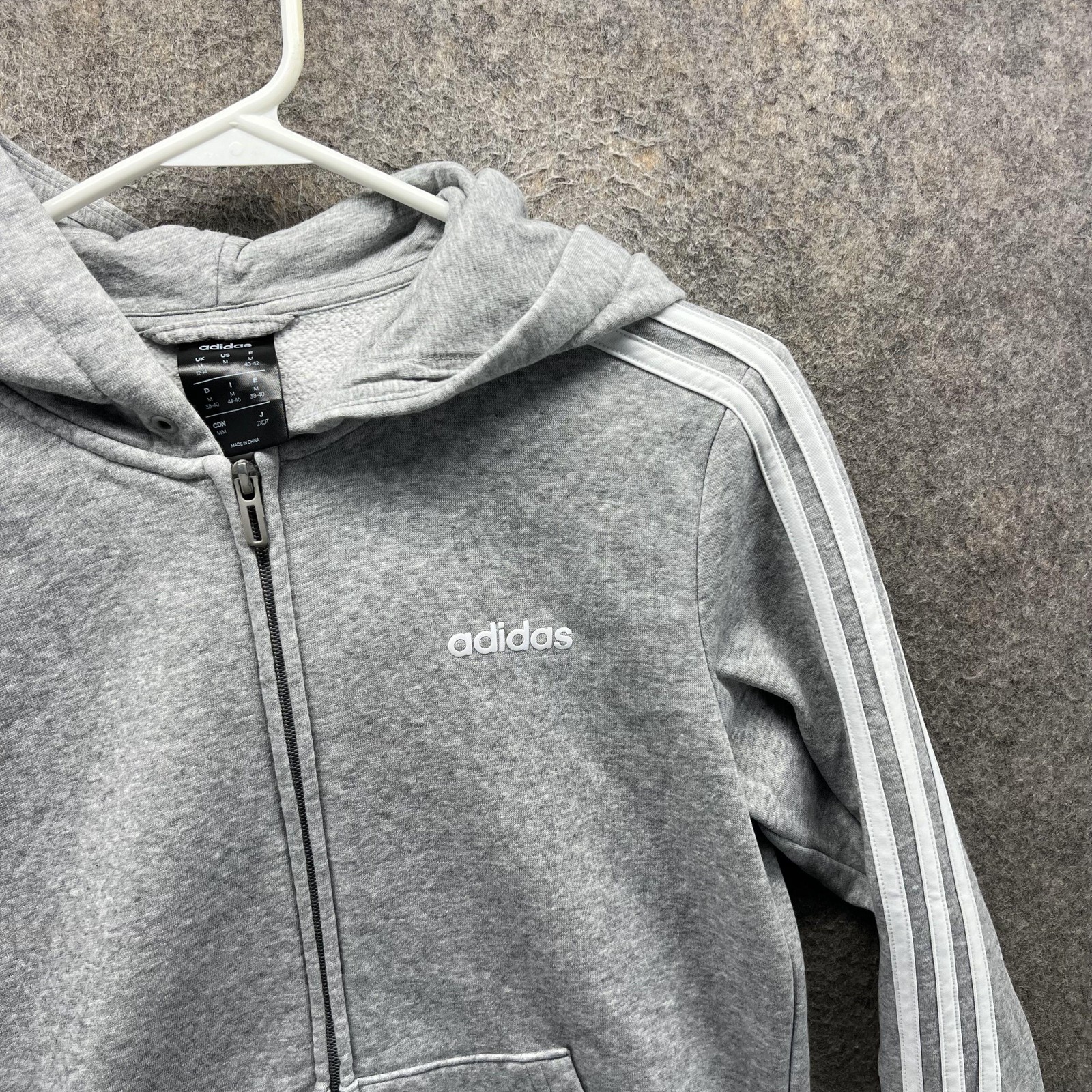 Adidas Hoodie Sweatshirt Youth Medium Gray 3 Stripes Full Zip Fleece Athletic