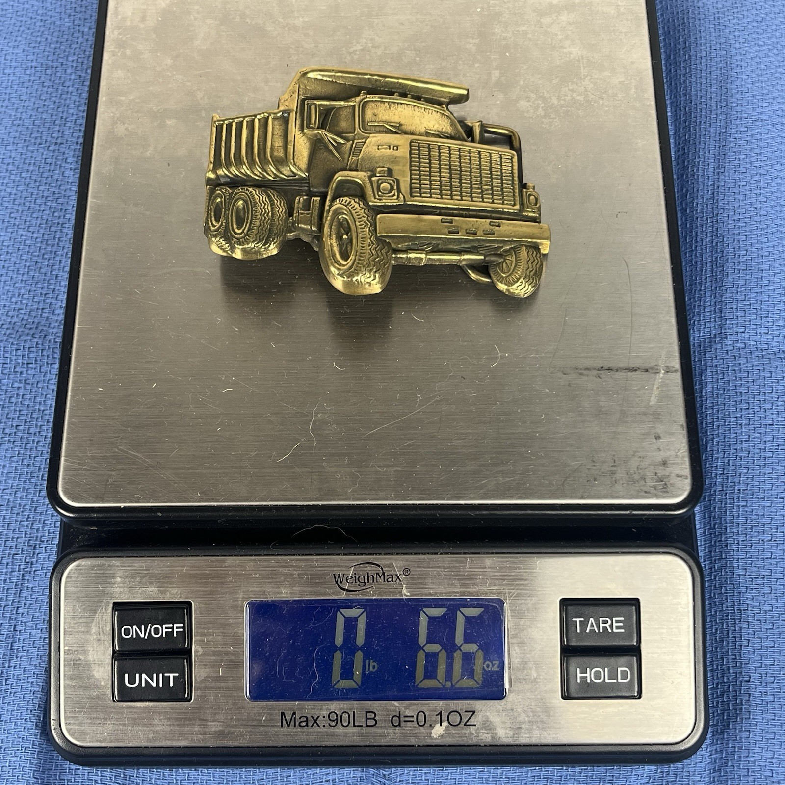 VINTAGE 1978 CUT-OUT DUMP TRUCK HEAVY MACHINERY SOLID BRASS BUCKLE