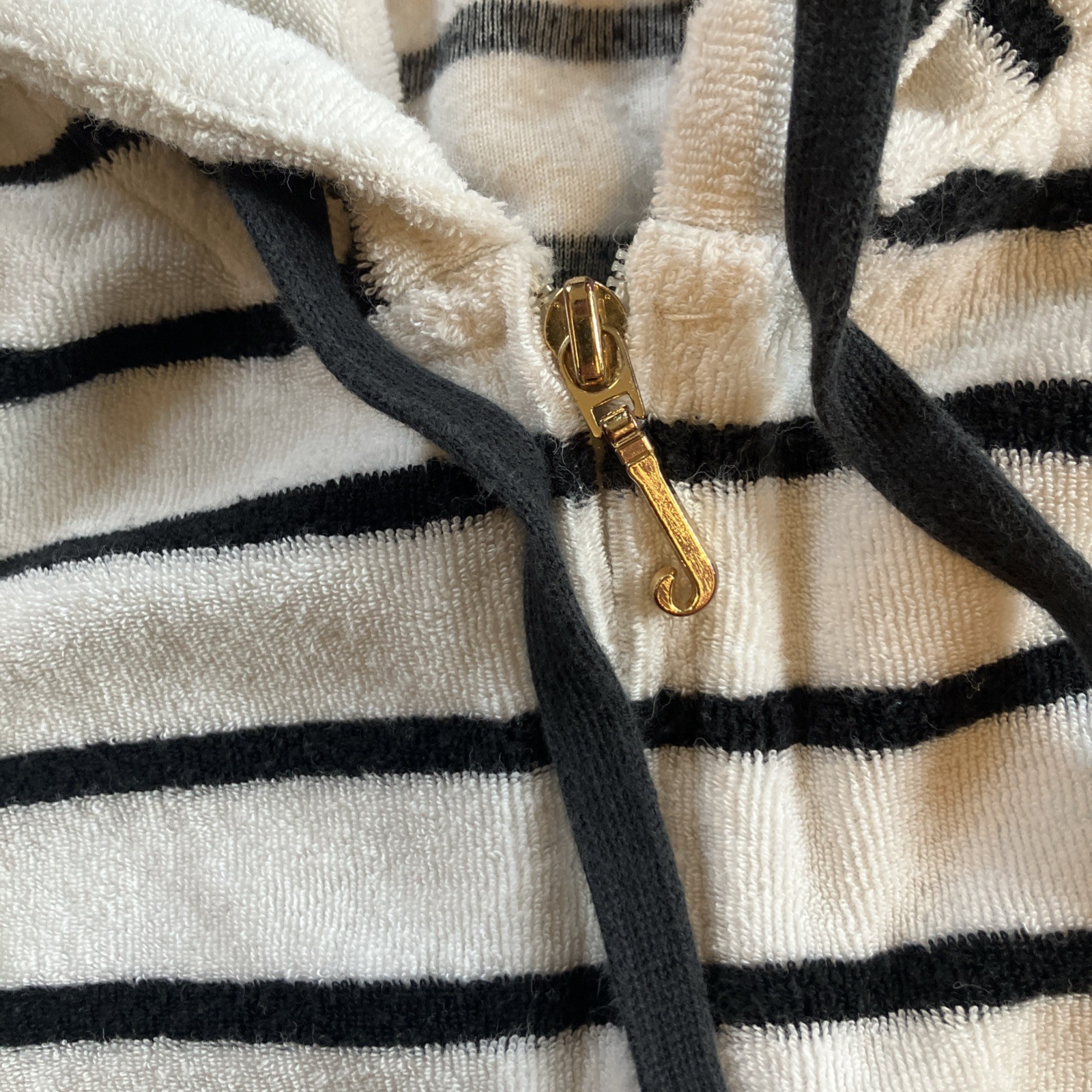 как выглядит Vtg Y2K Juicy Couture Hoodie XL Terry Full Zip Jacket White Striped фото
