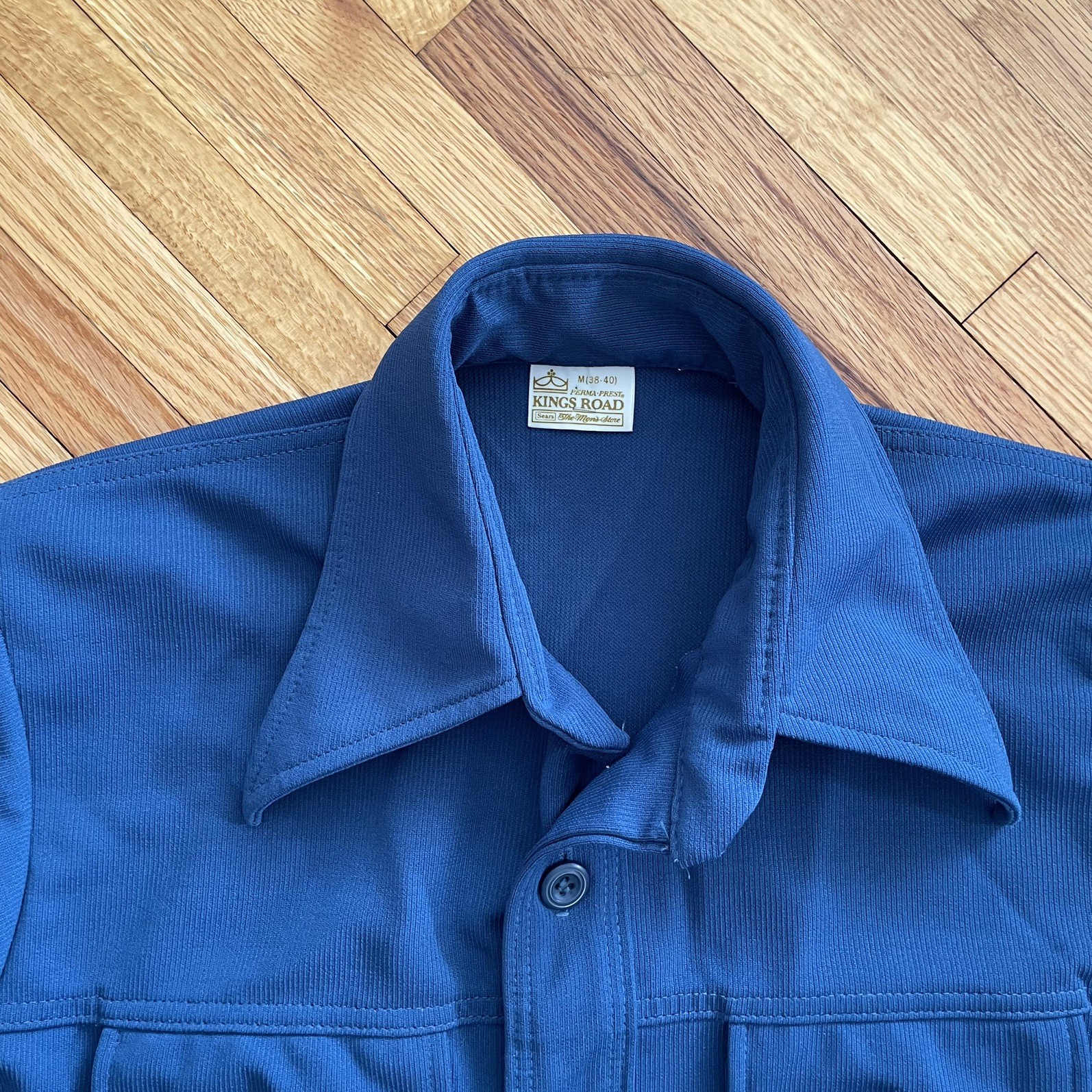 Vintage Sears Kings Road Shirt Men Medium Perma Prest Blue 1970s